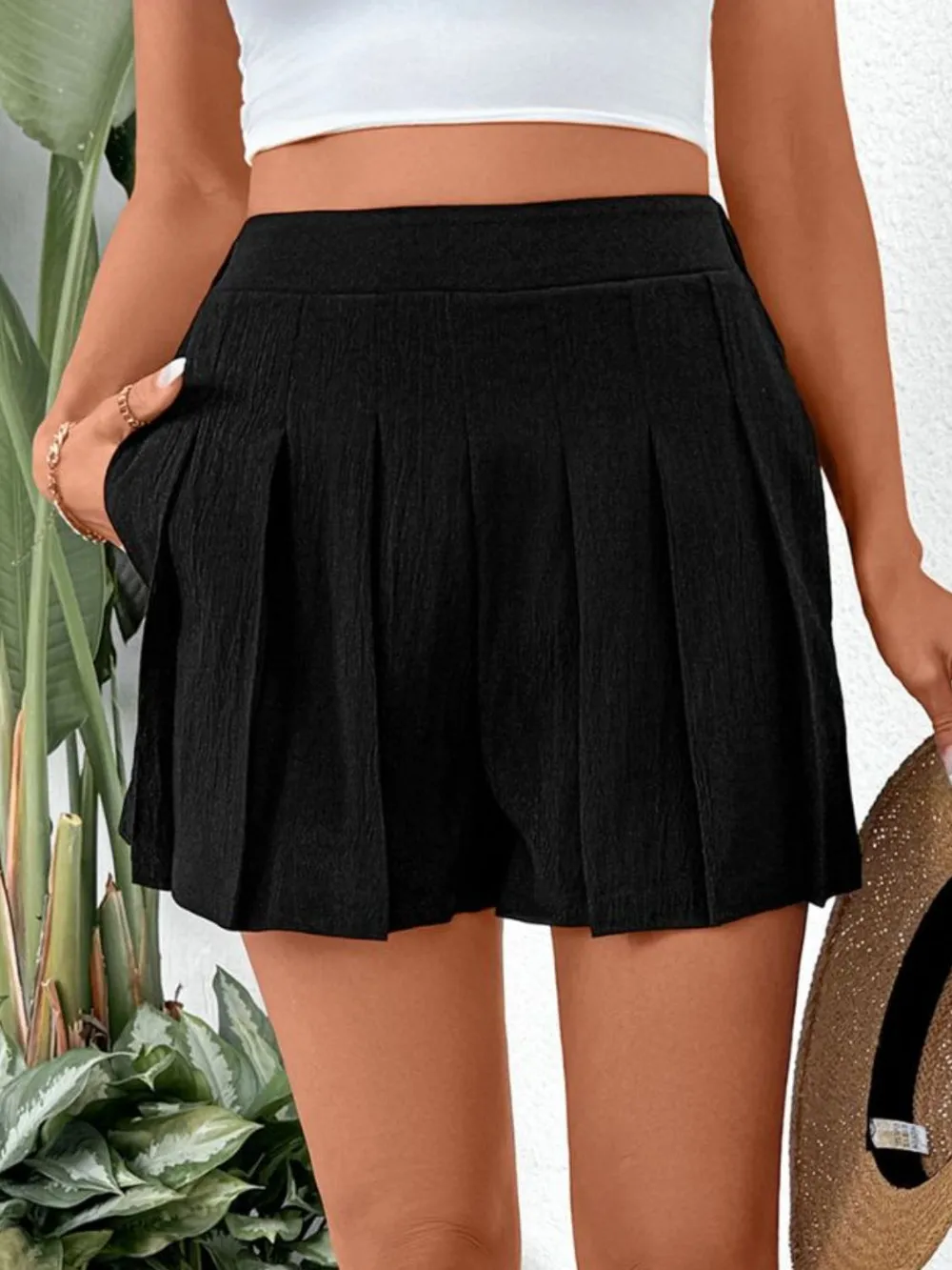 Pleated Shorts with Pockets