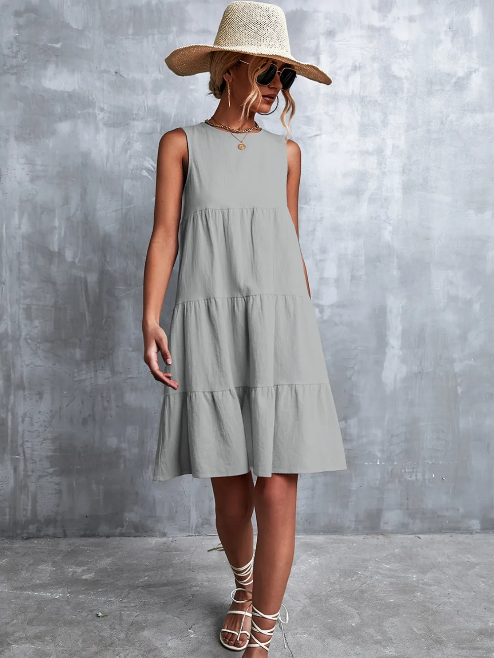 Tiered Round Neck Sleeveless Mini Tank Dress