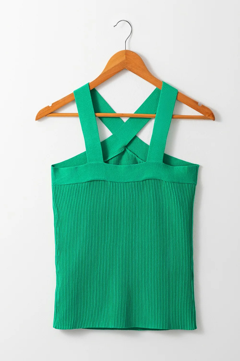 Ribbed Criss Cross Halter Neck Sheath Sweater Tank Top
