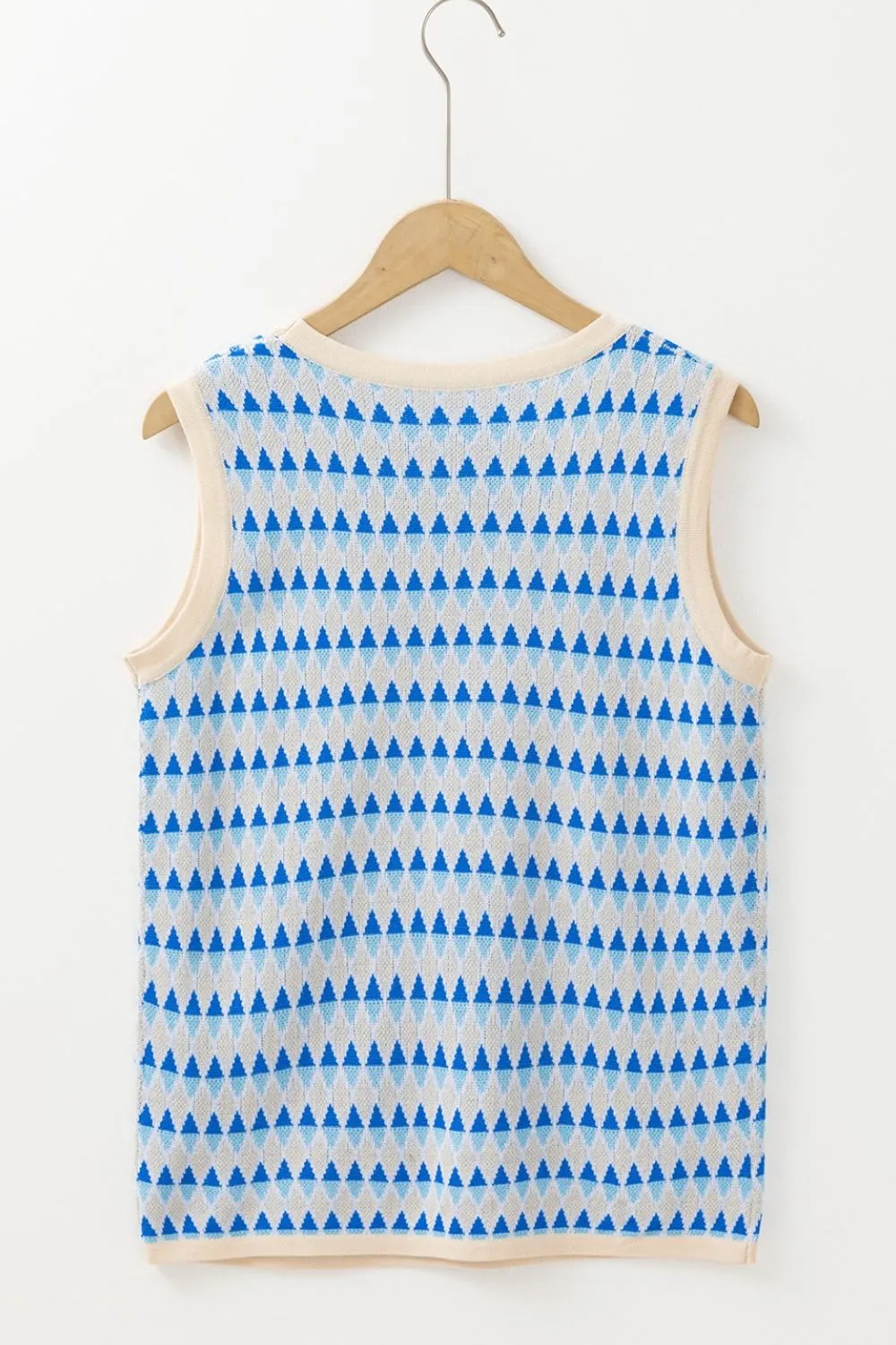 Stripe Geometric Print Round Neck Slim Fit Sweater Vest