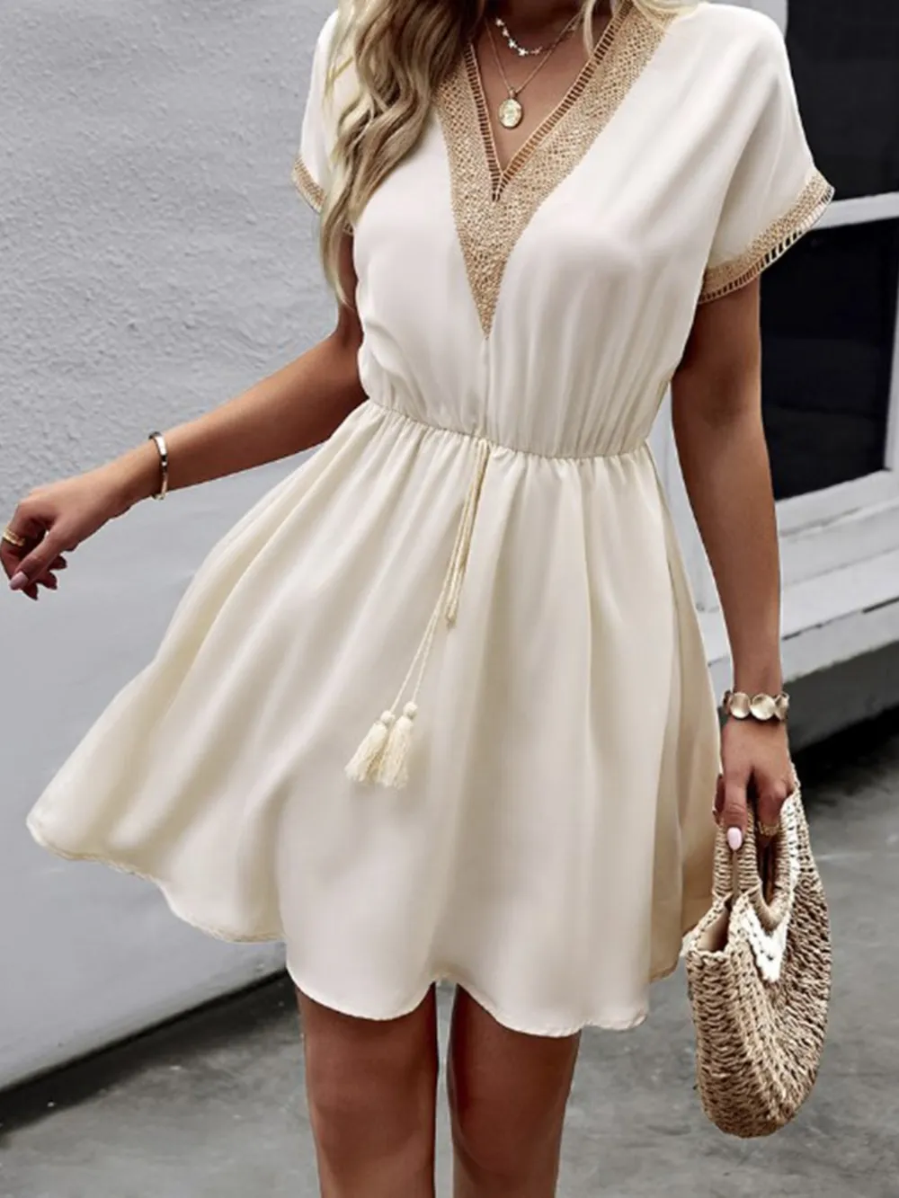 Full Size Tassel V-Neck Short Sleeve Dress Plus Size