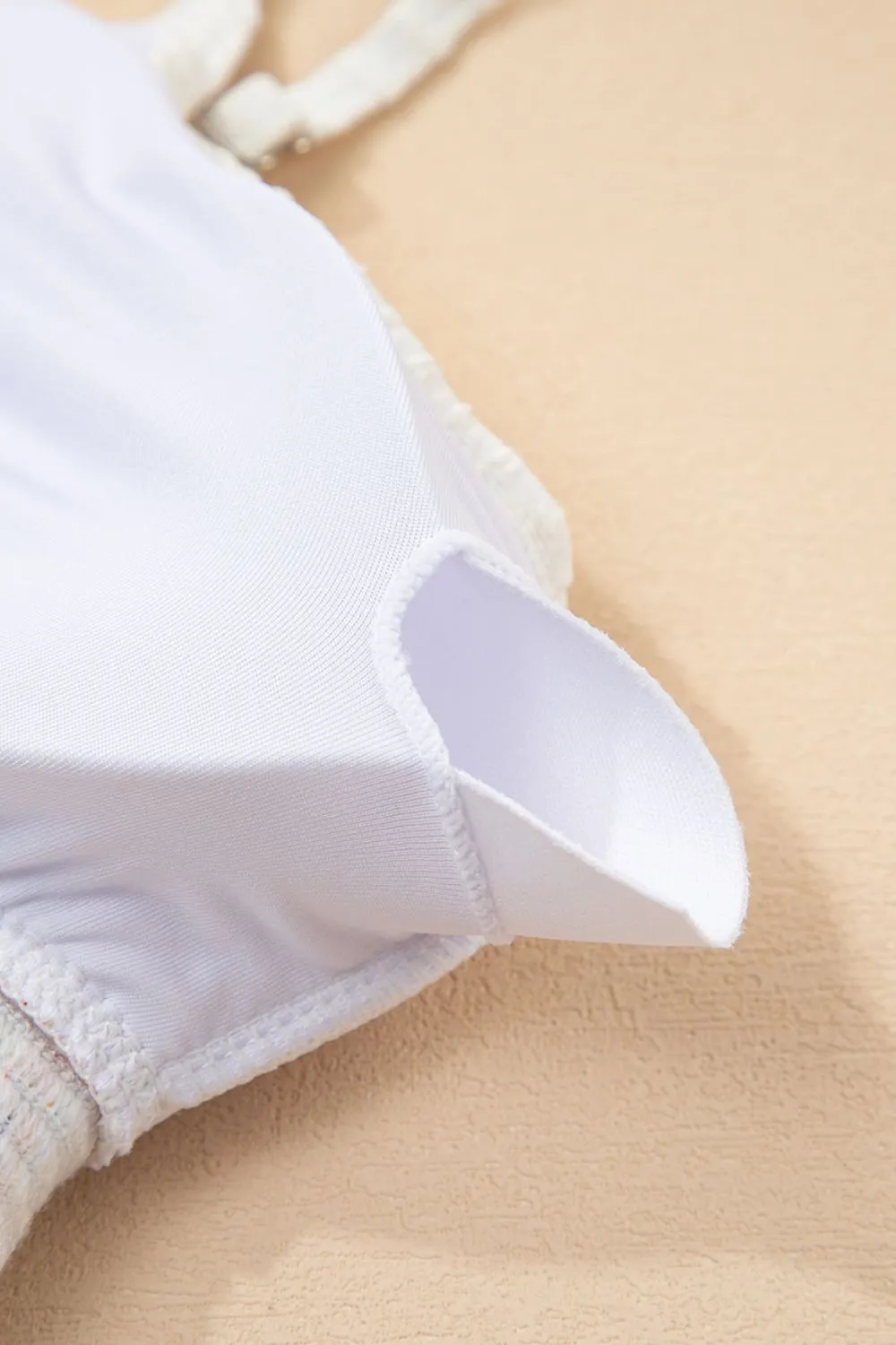 Textured Contrast Banding Bikini High Waist 2pcs Swimsuit