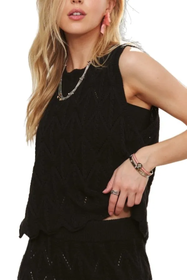 Detailed description of the ADORA Crocheted Sleeveless Top with Scalloped Hem, highlighting quality, design, and unique features that make it appealing to end consumers.