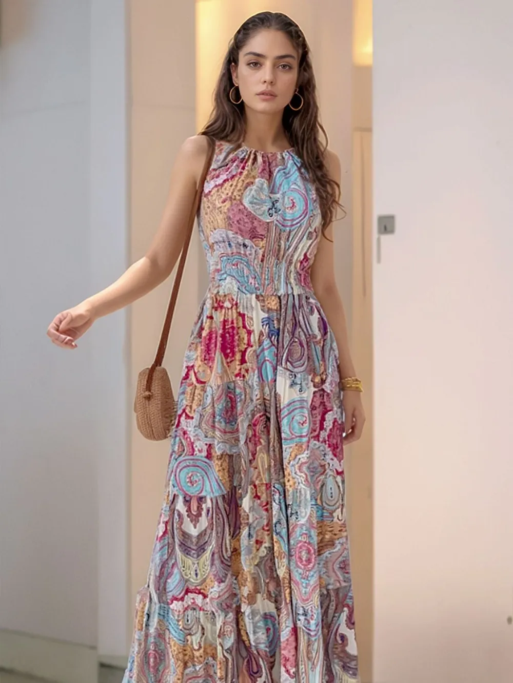 Printed Halter Neck Maxi Dress