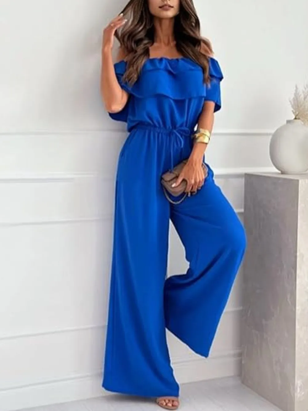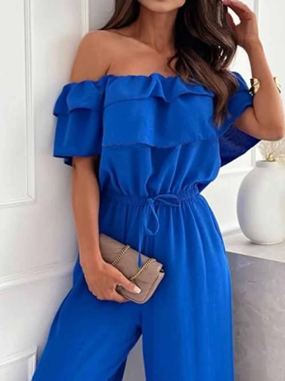 Off-Shoulder Ruffled Wide Leg Jumpsuit