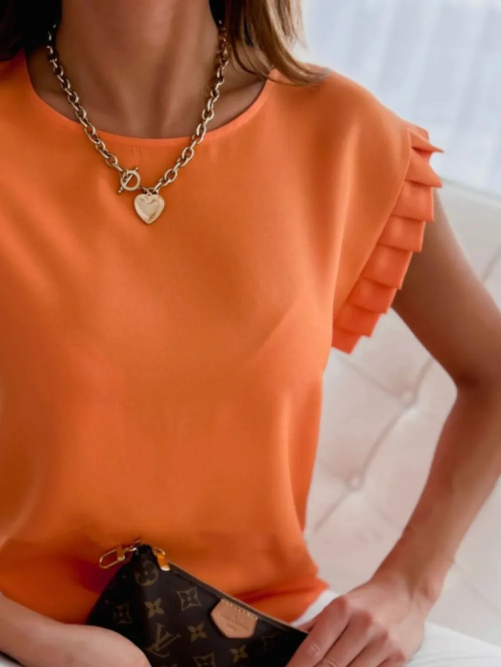 Ruffled Round Neck Cap Sleeve Top