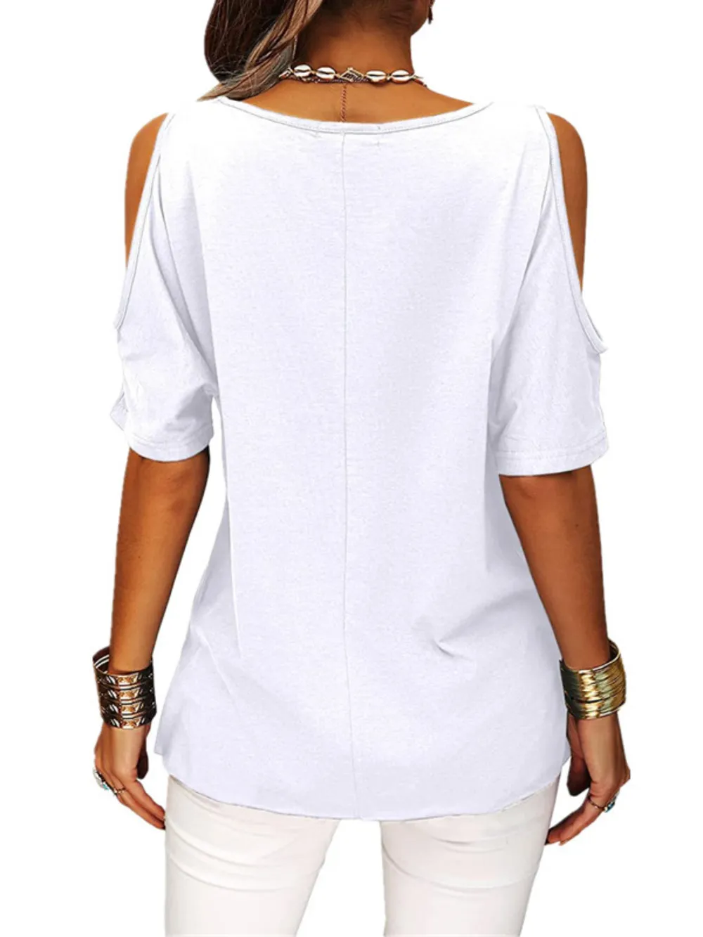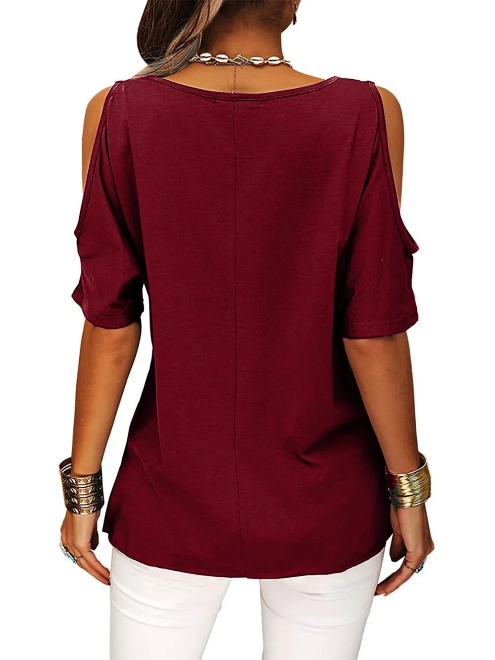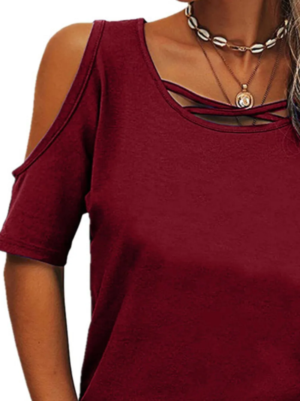 Full Size Crisscross Cold Shoulder Casual T-Shirt Plus Size