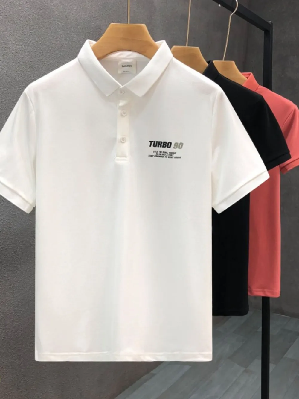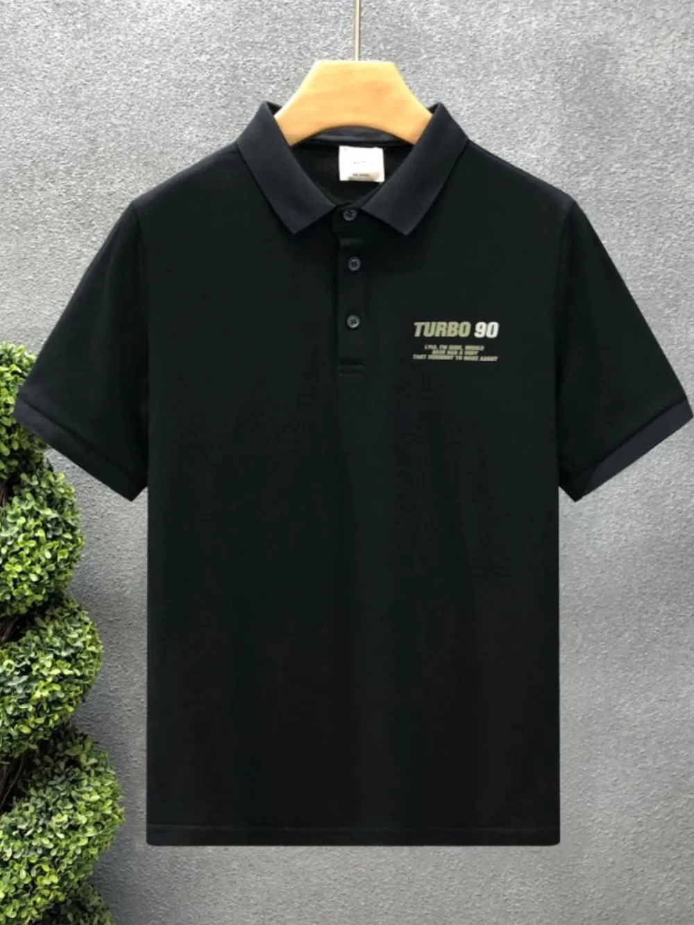 Men's Plus Size Letter Graphic Short Sleeve Polo