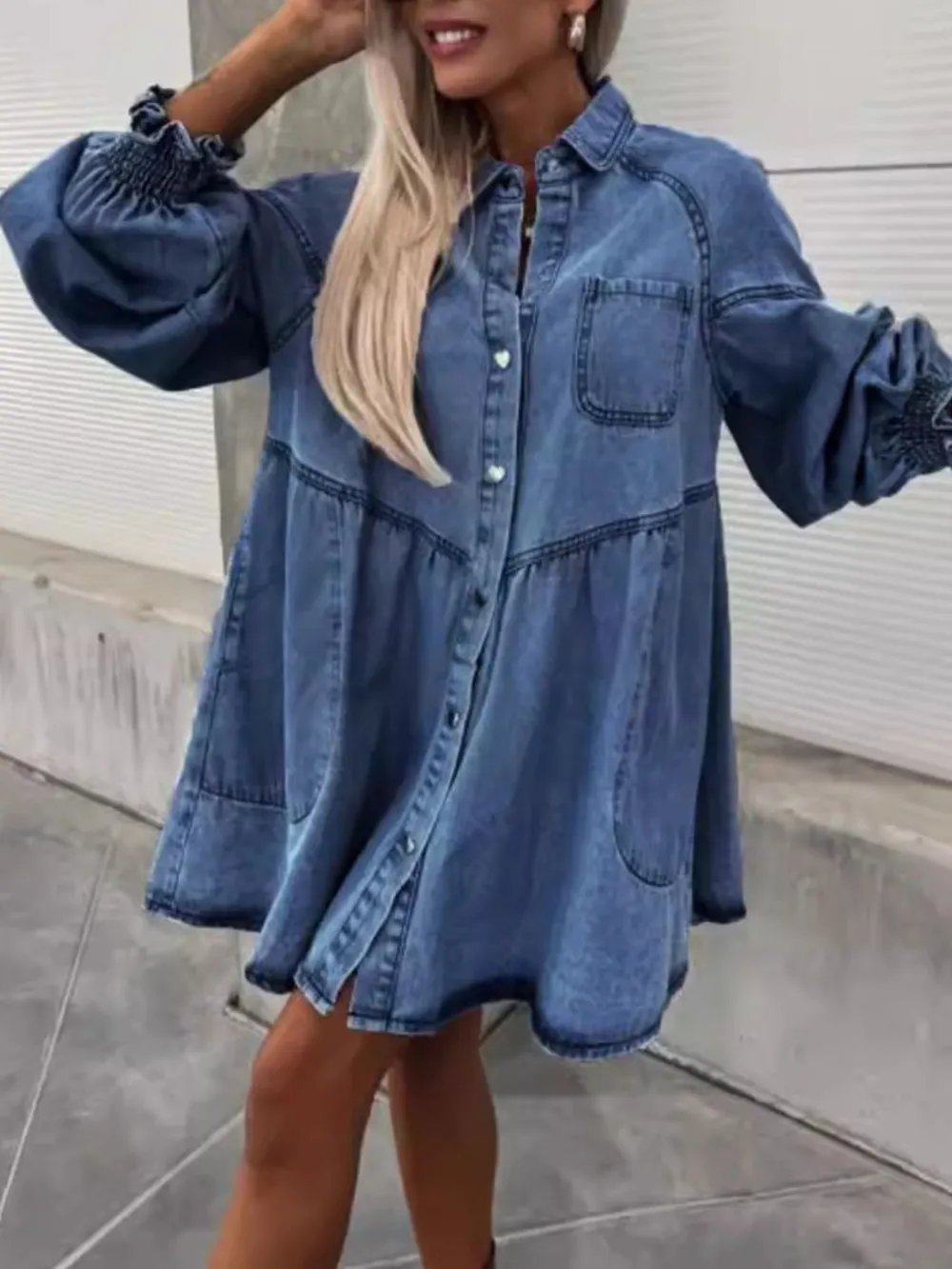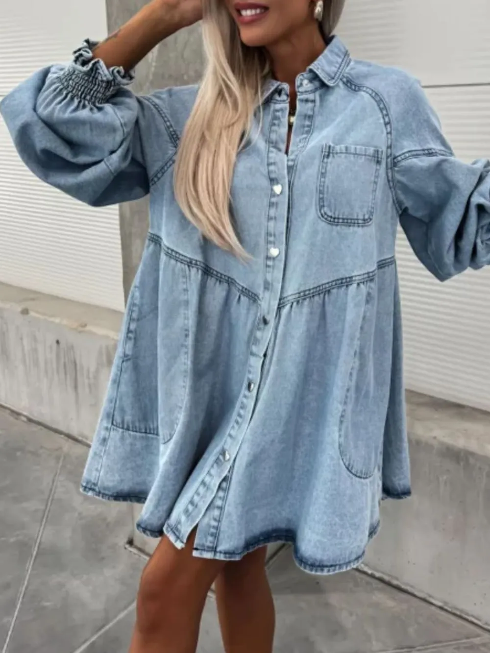 Oversized Long Sleeve Button-Up Denim Dress