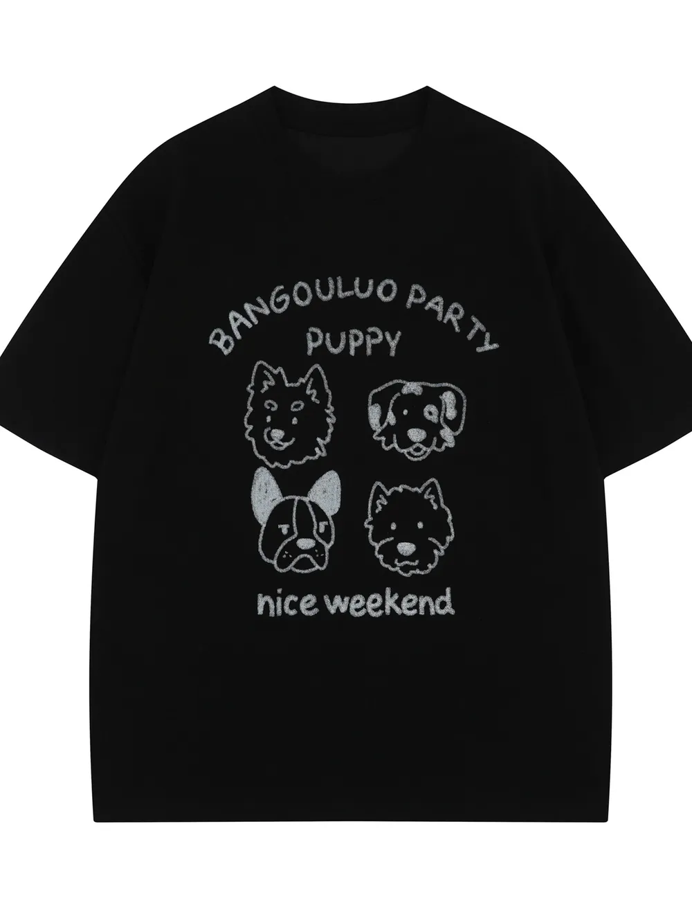 Men's Puppy Graphic Round Neck Casual T-Shirt
