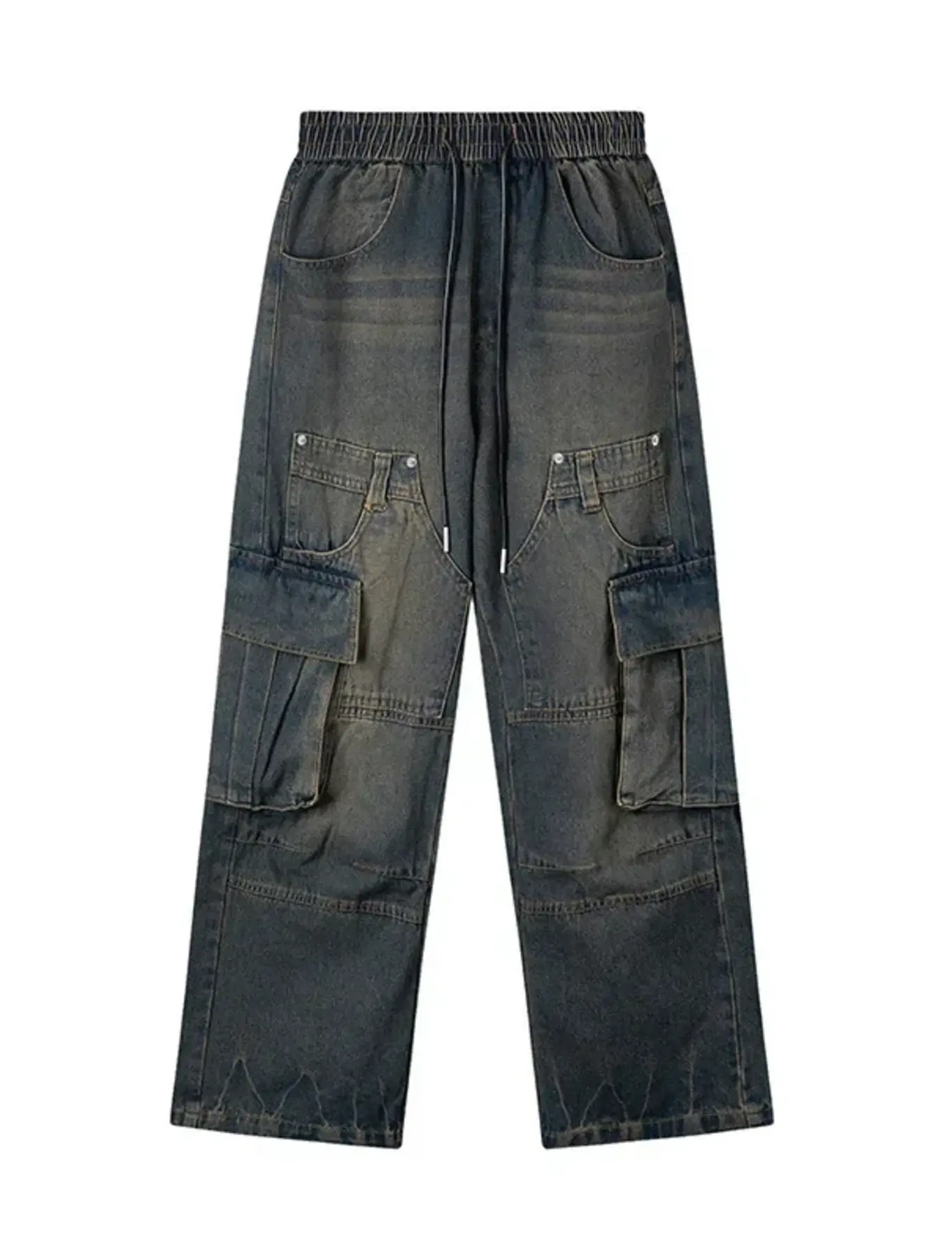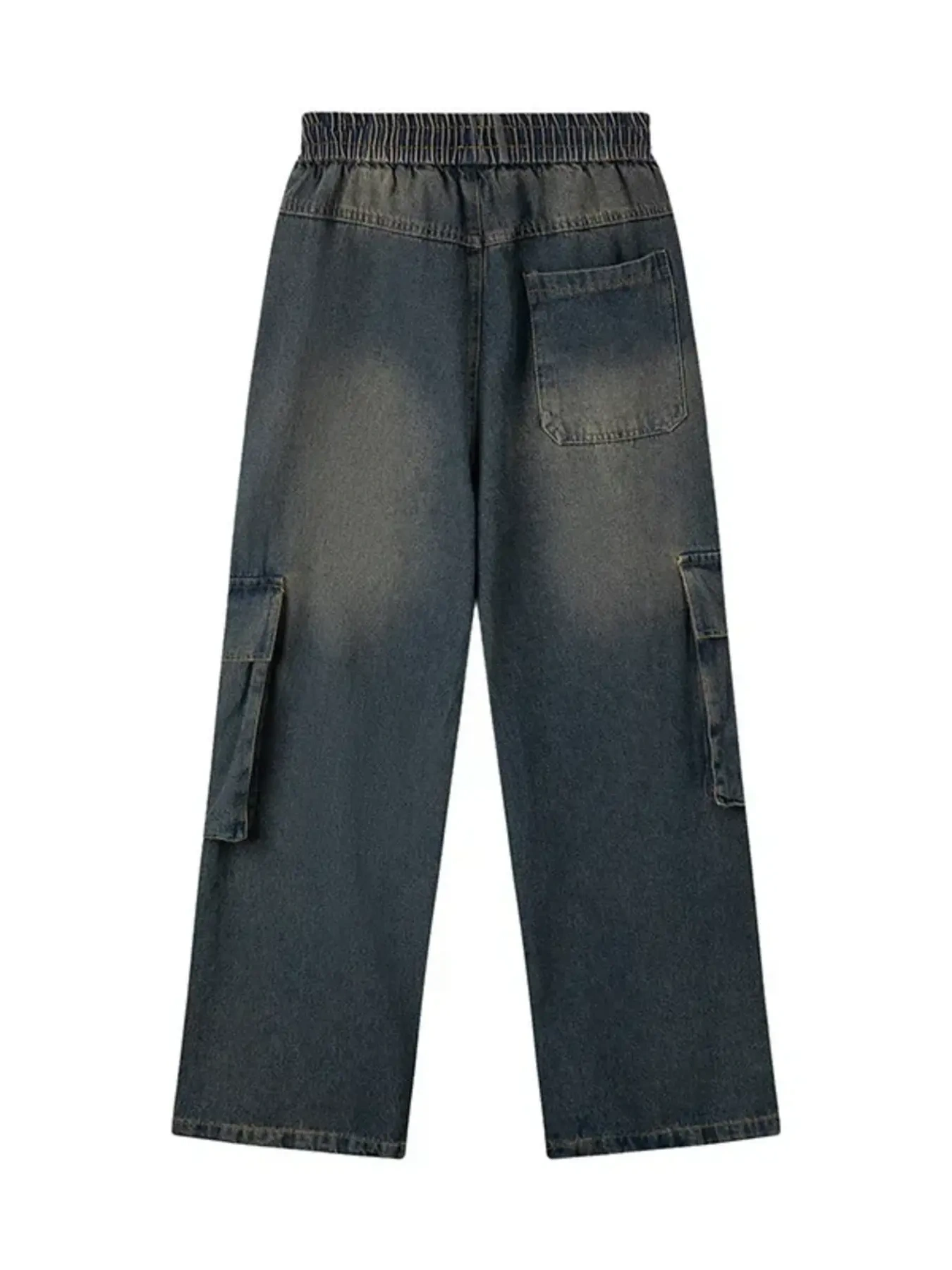 Men's Elastic Waist Washed Cargo Jeans