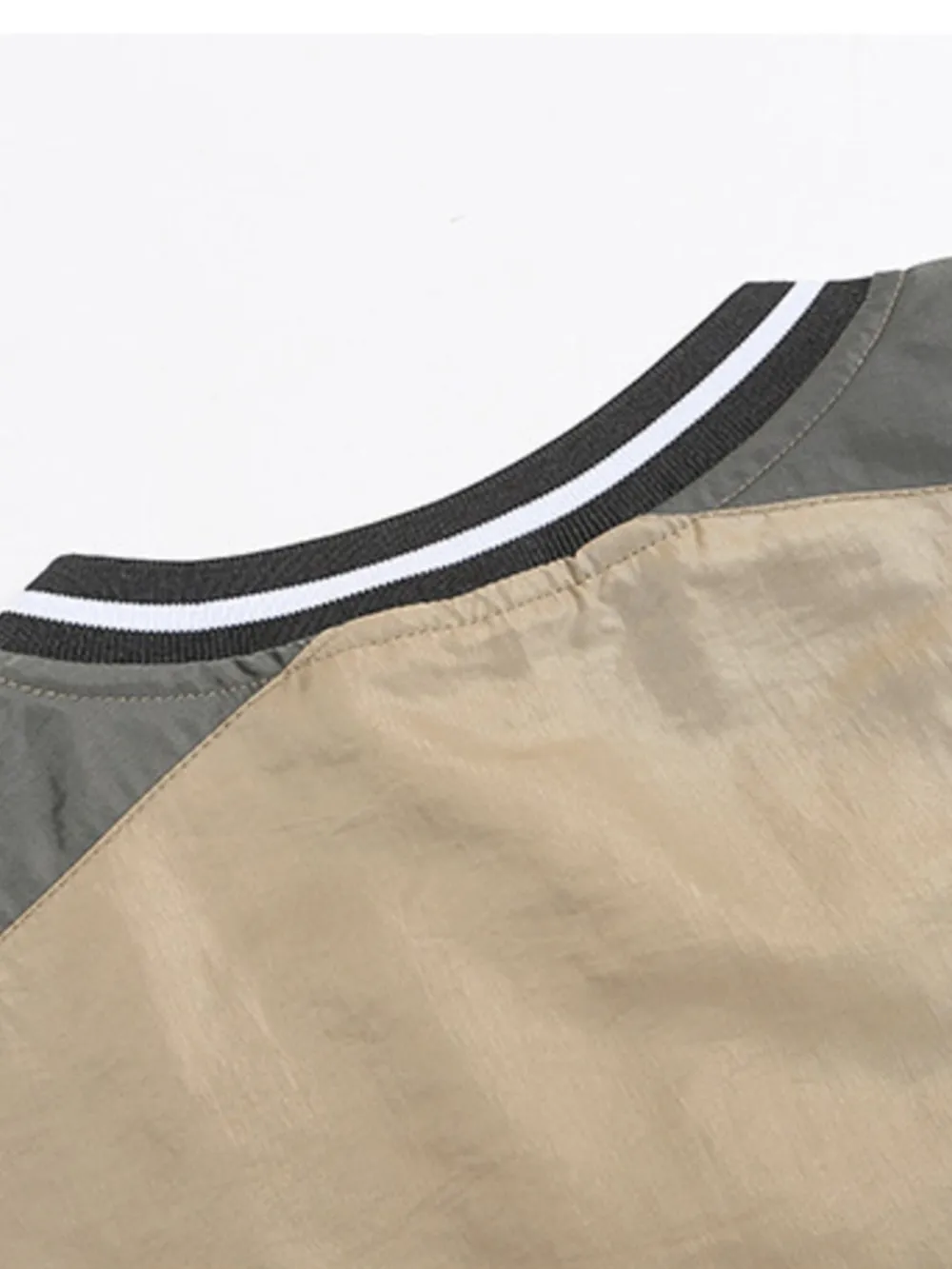 Men's Contrast Pullover Windbreaker with Embroidered Detail