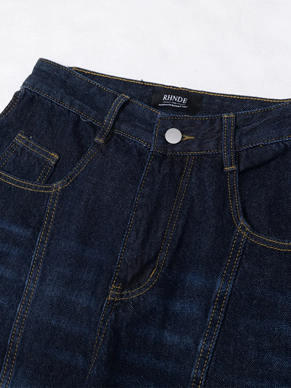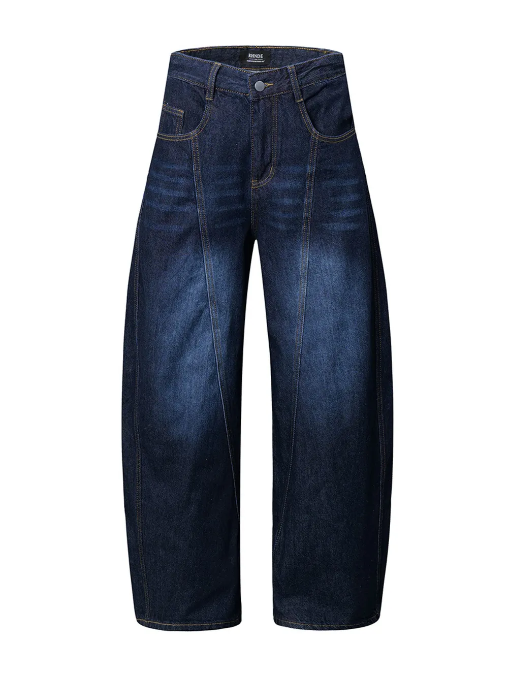 Men's Wide Leg Wash Denim Jeans with Signature Detail