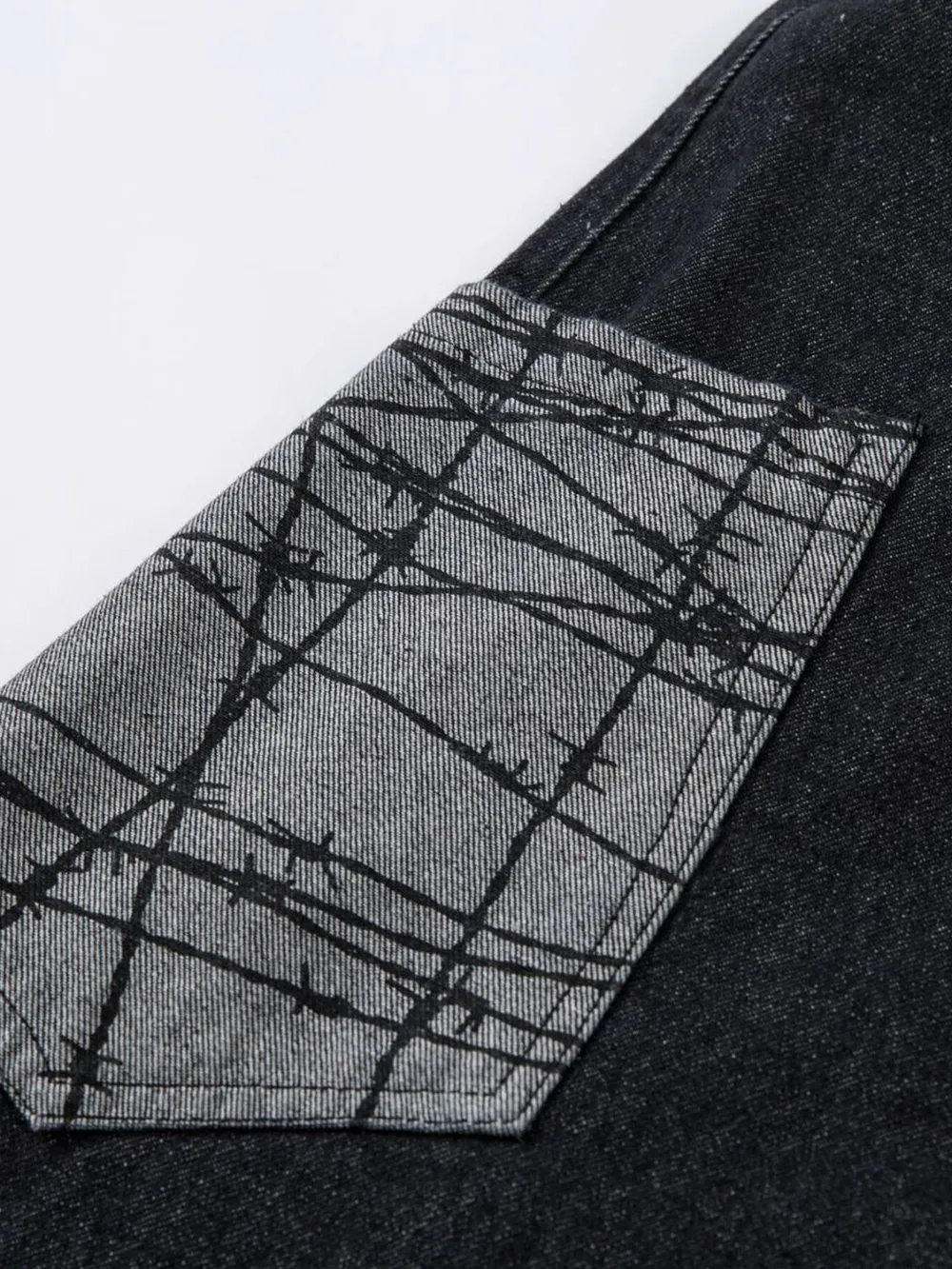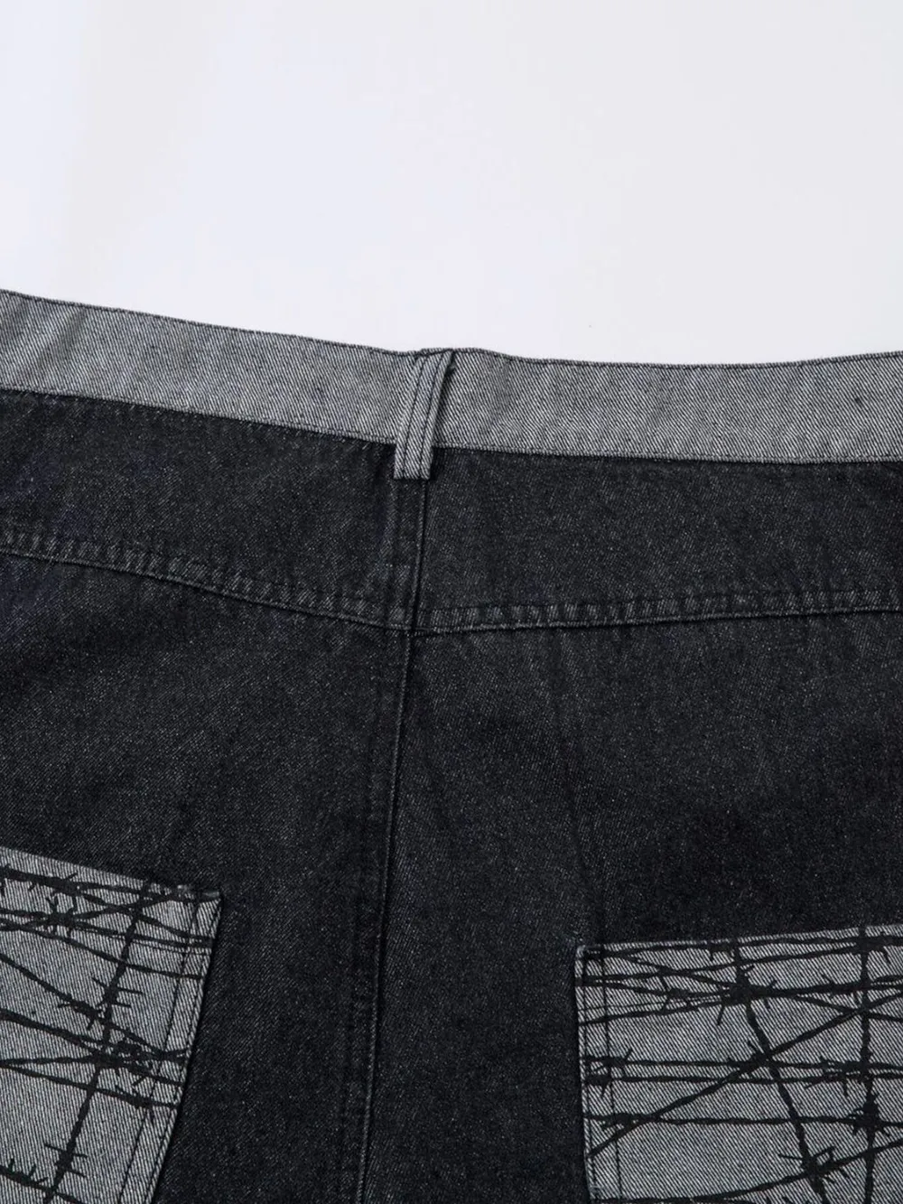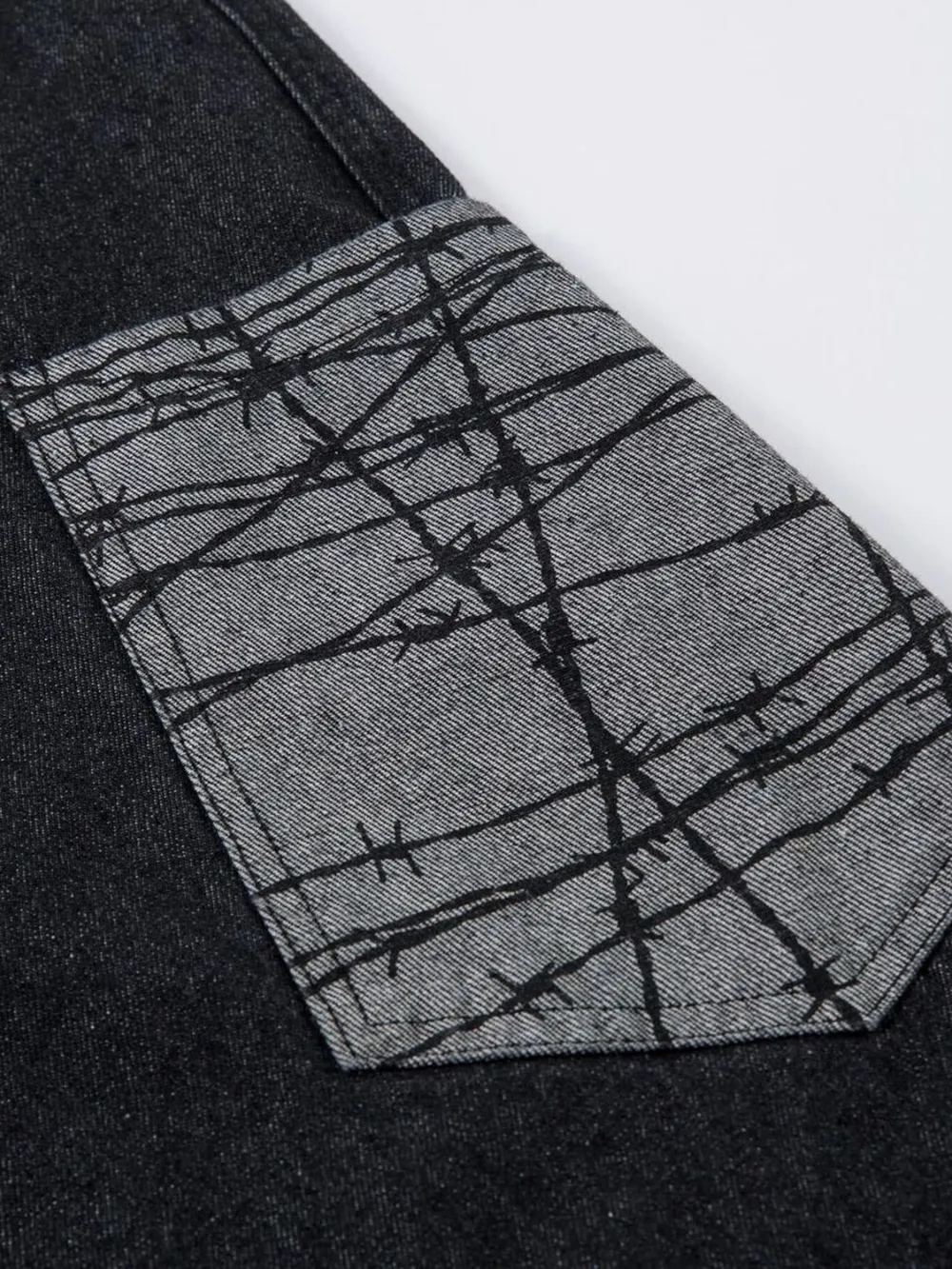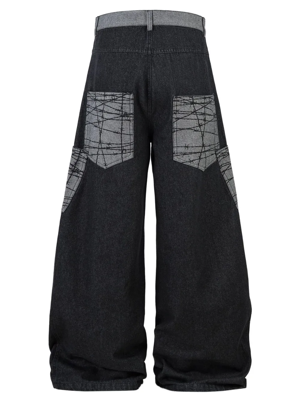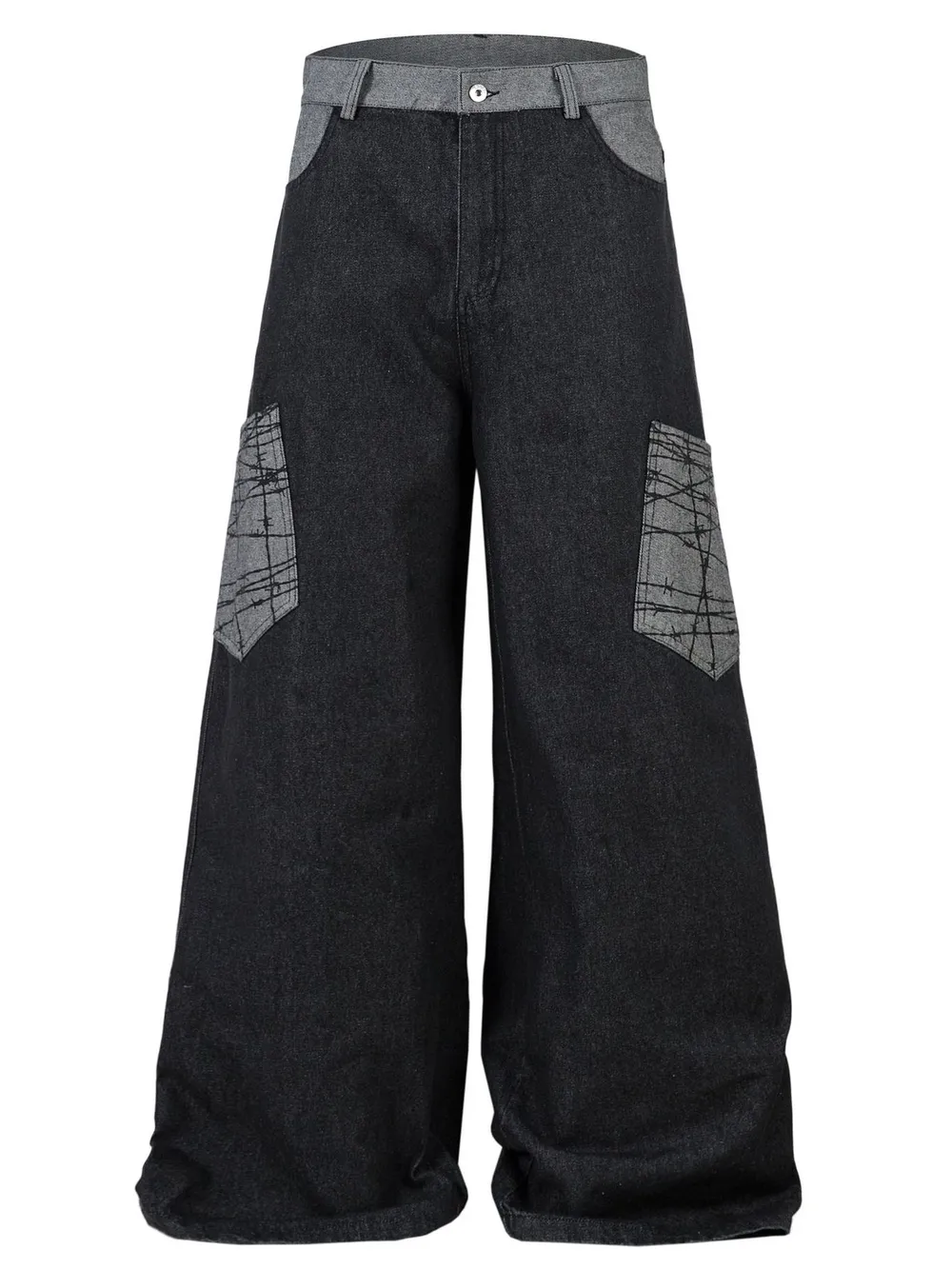 Men's Wide Leg Cargo Jeans with Contrast Panels