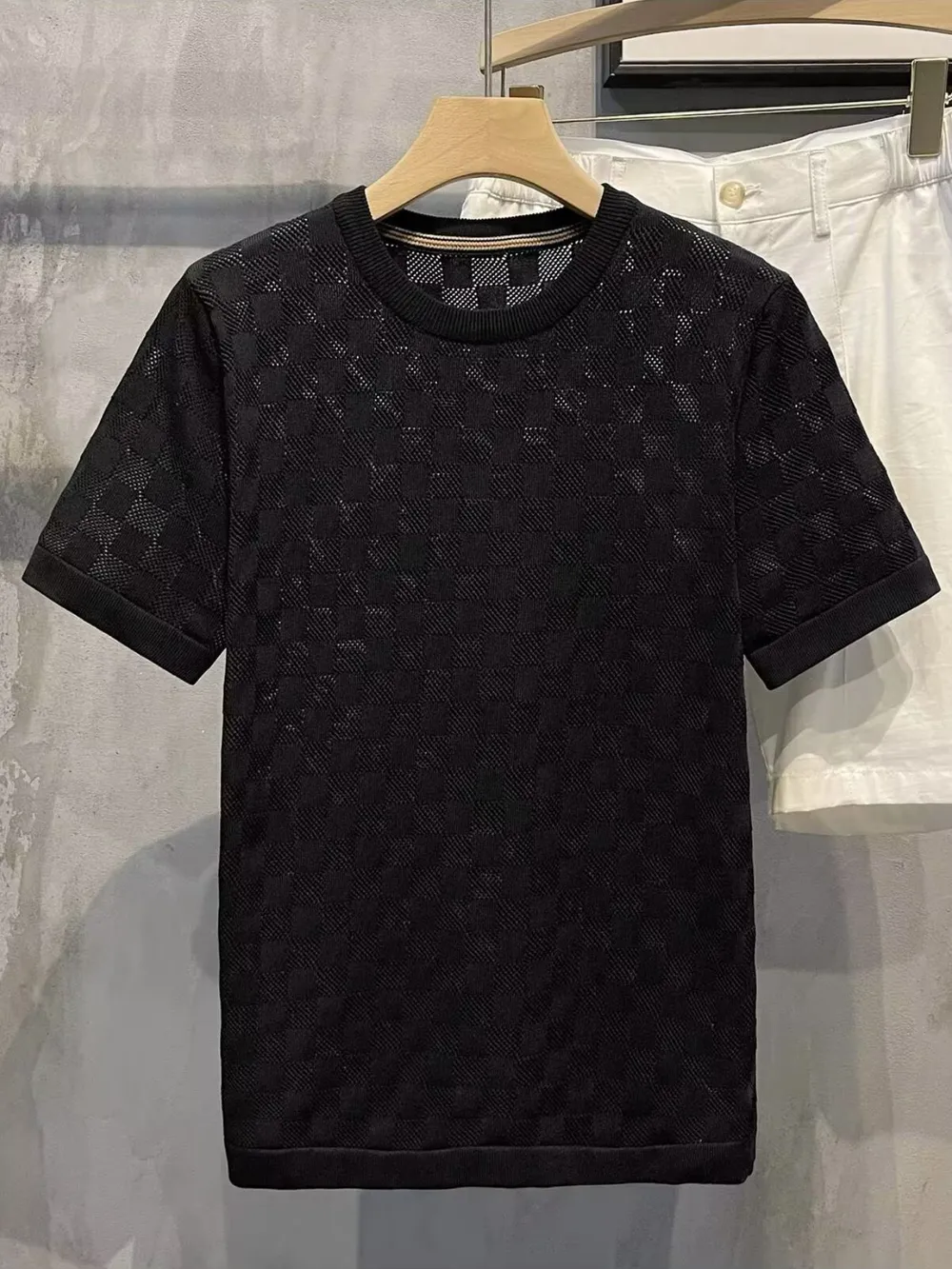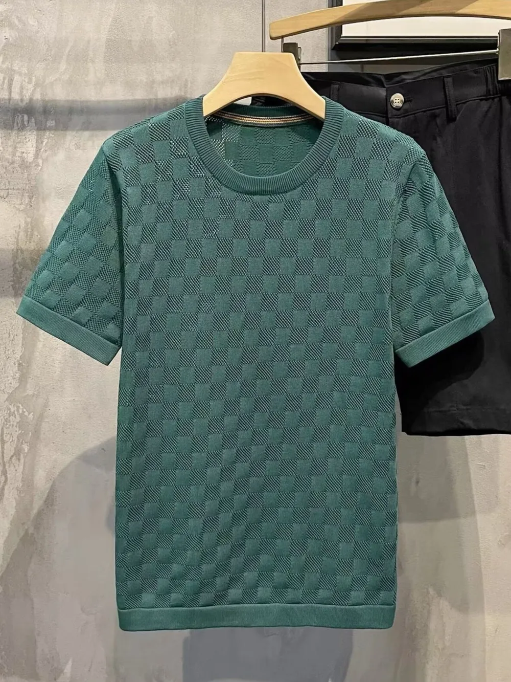 Men's Full Size Checkered Round Neck Short Sleeve T-Shirt Plus Size
