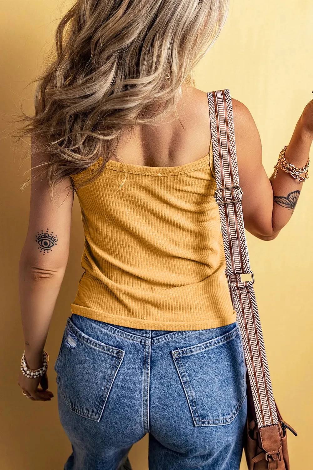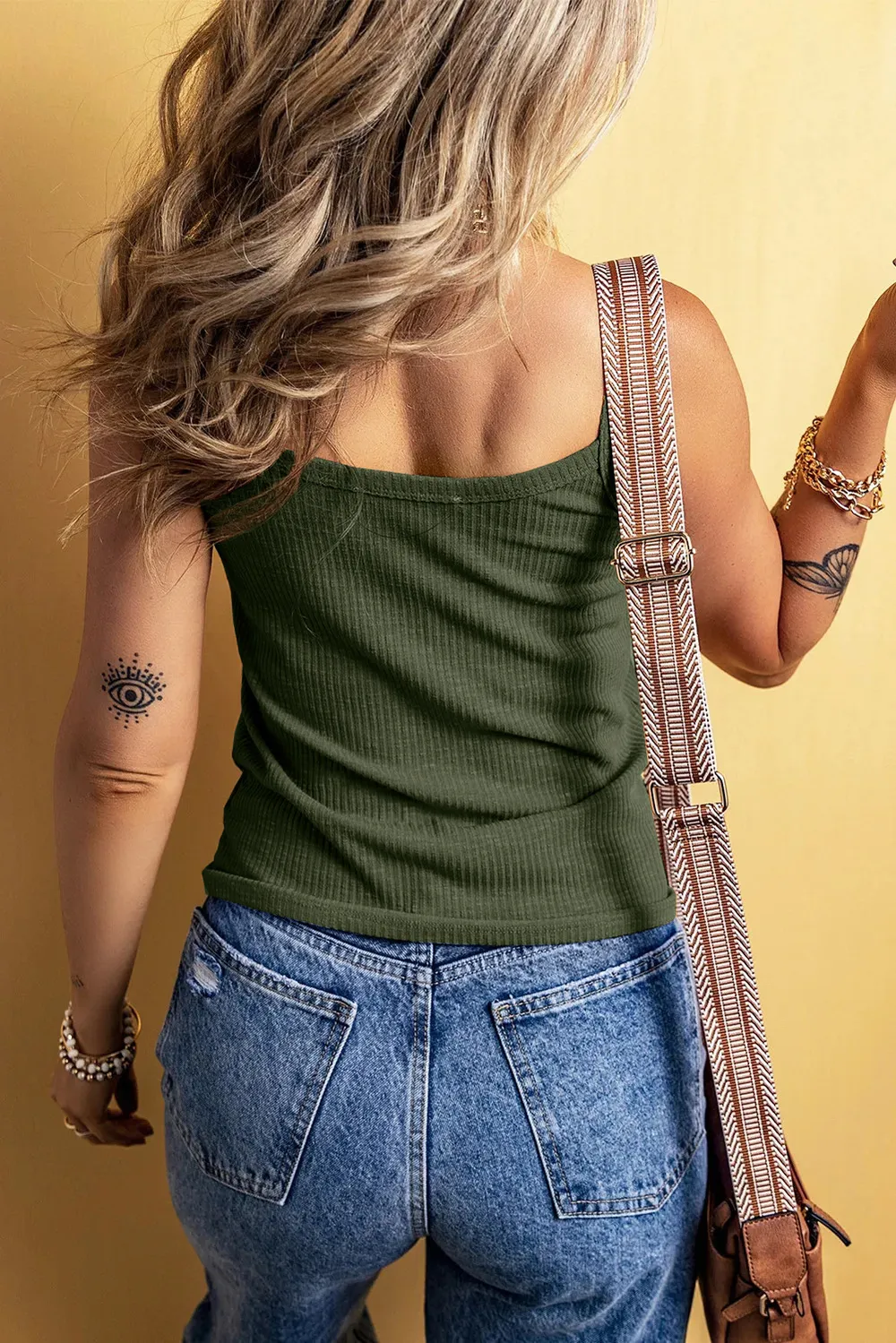Full Size Casual Ribbed Button-Front Tie-Hem Tank Top Plus Size