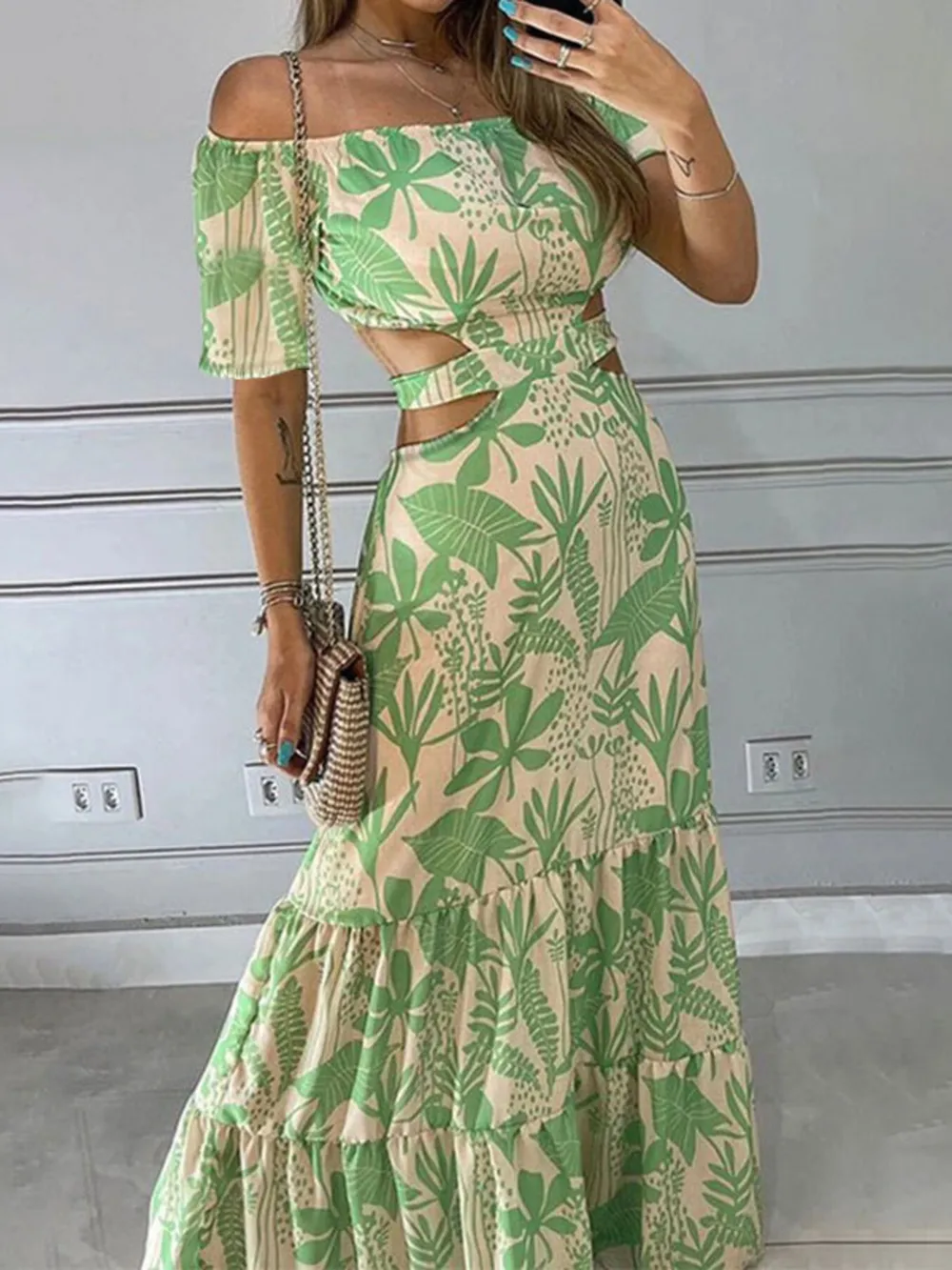 Full Size Cutout Off-Shoulder Printed Maxi Dress Plus Size