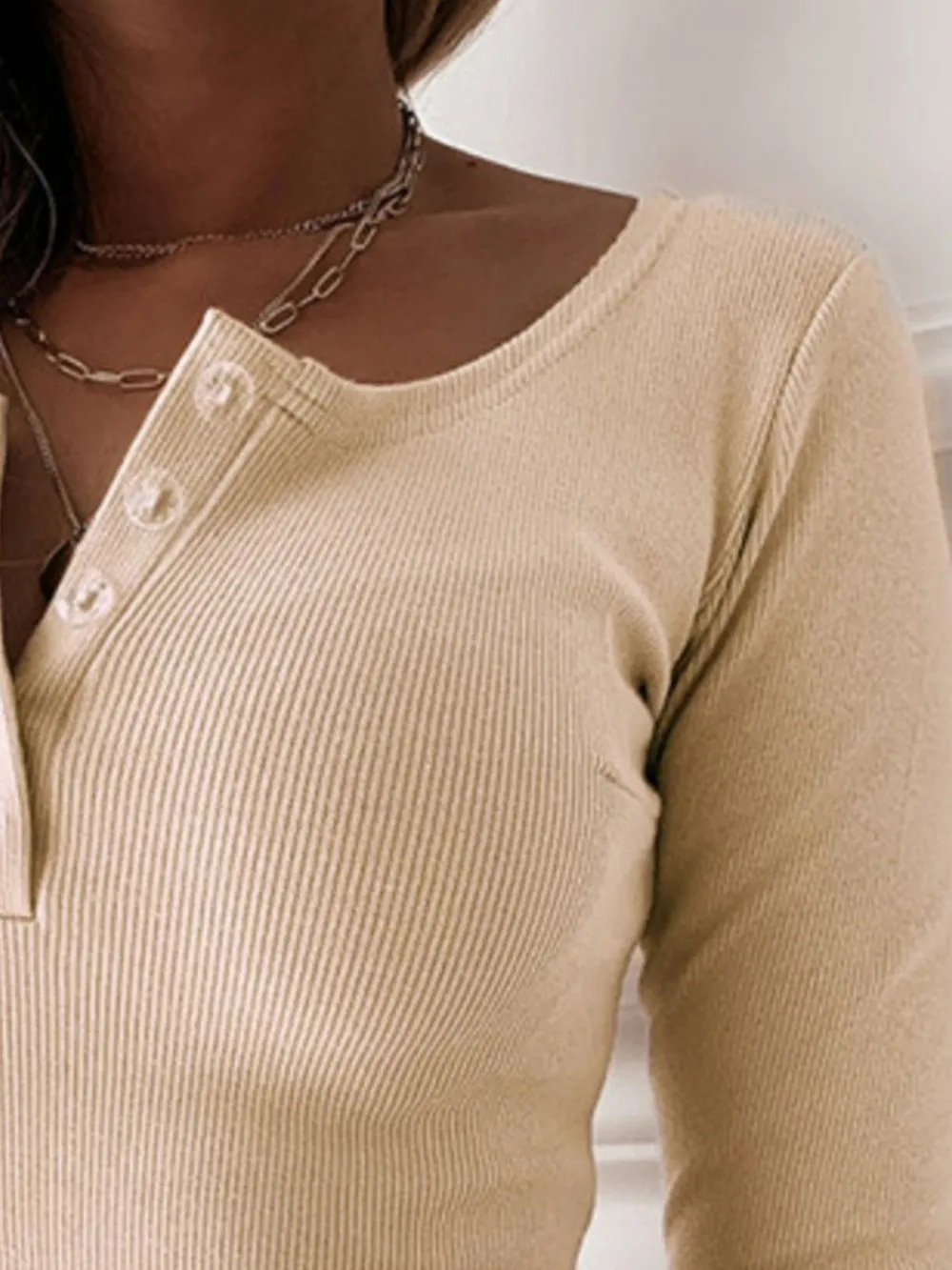 Button Detail Long Sleeve T-Shirt