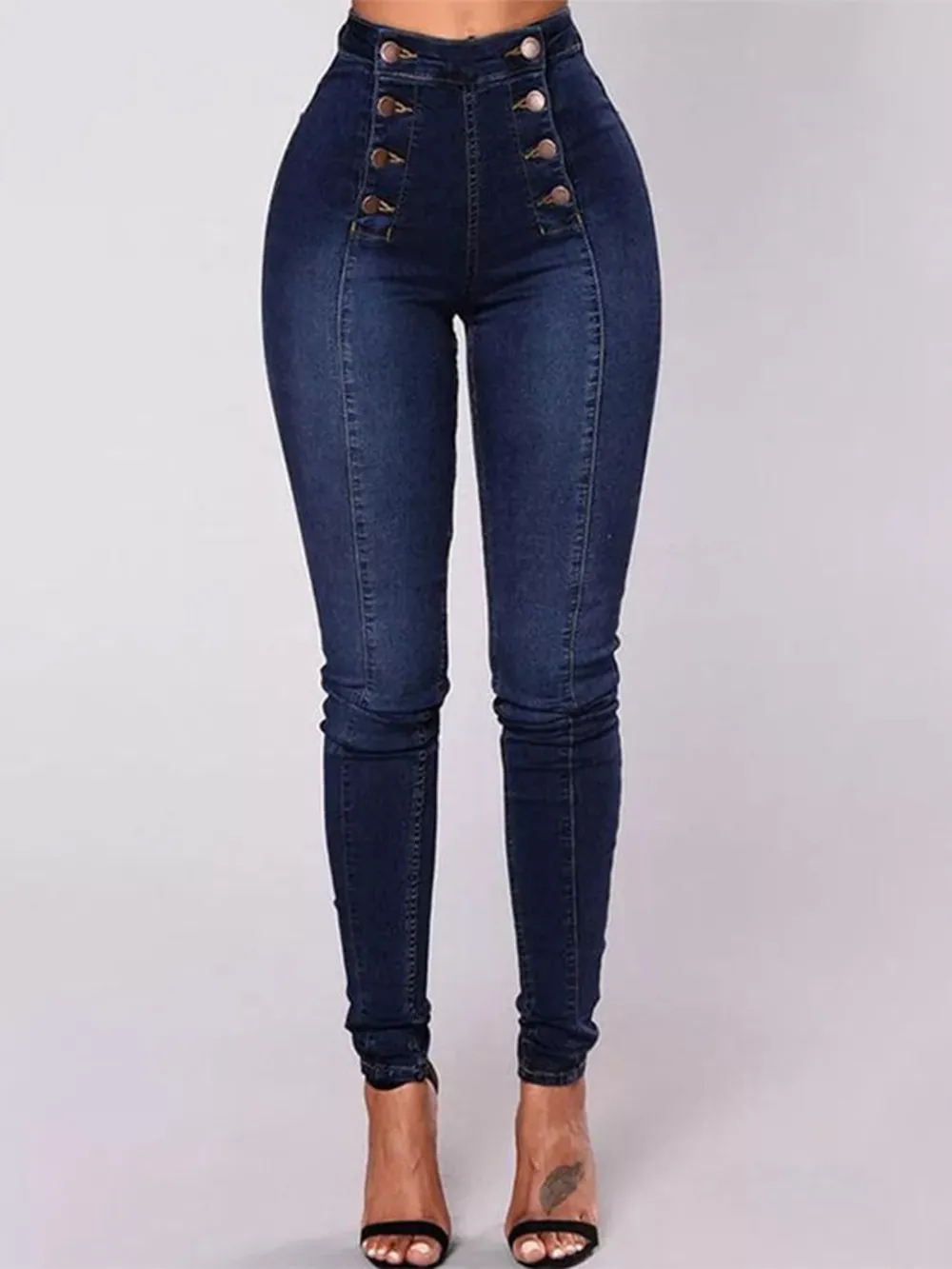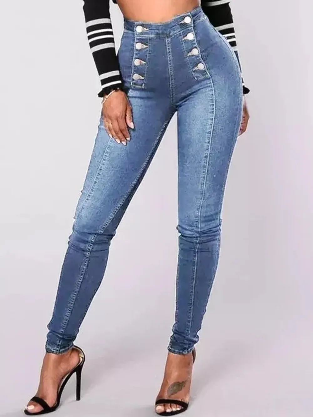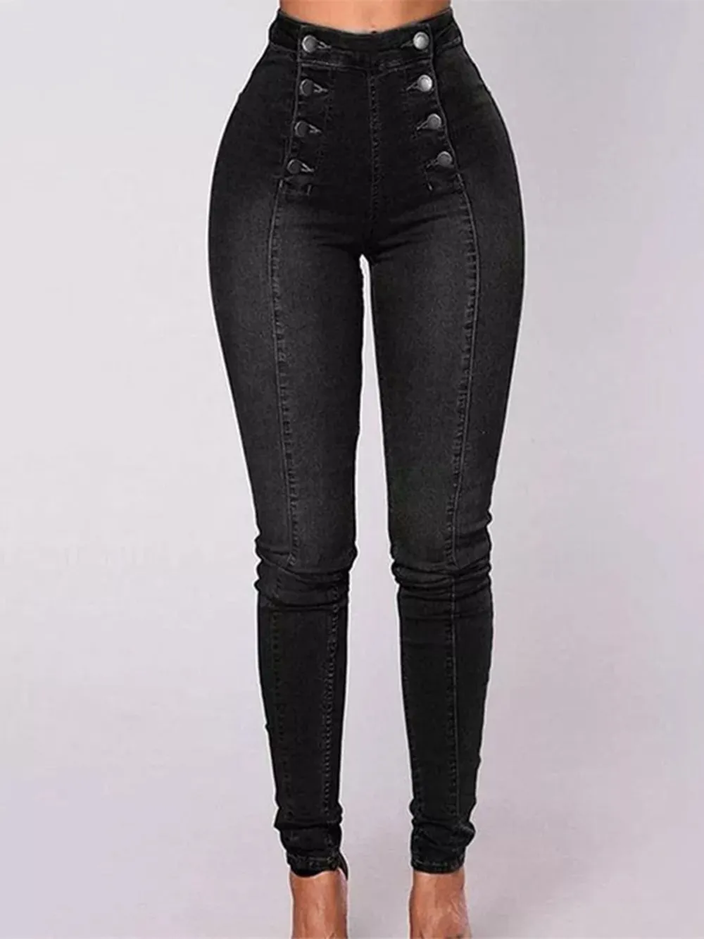 Full Size High-Waisted Double-Breasted Skinny Jeans Plus Size