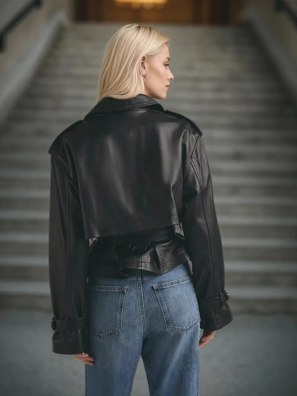 Leather Belted Trench Jacket