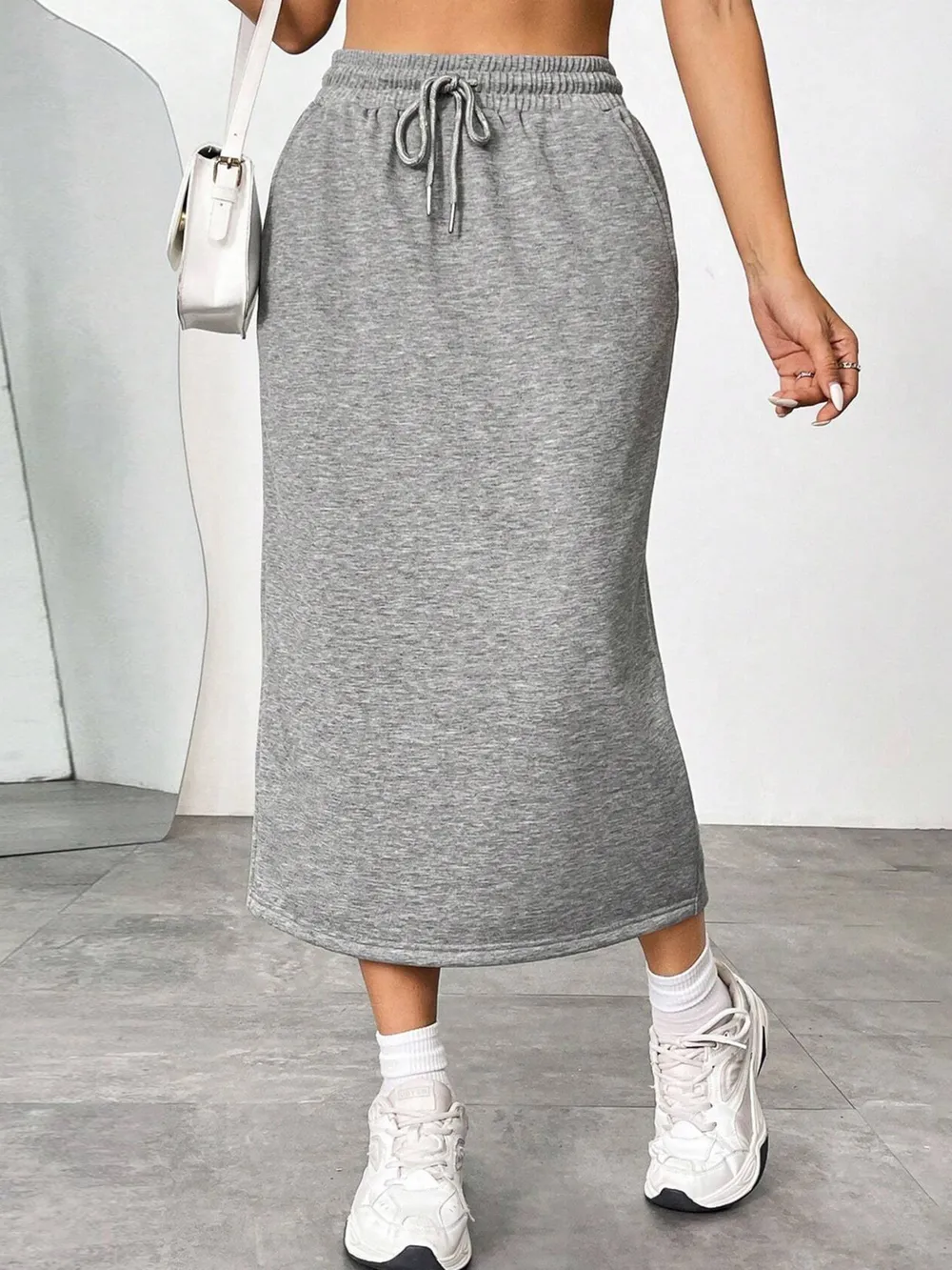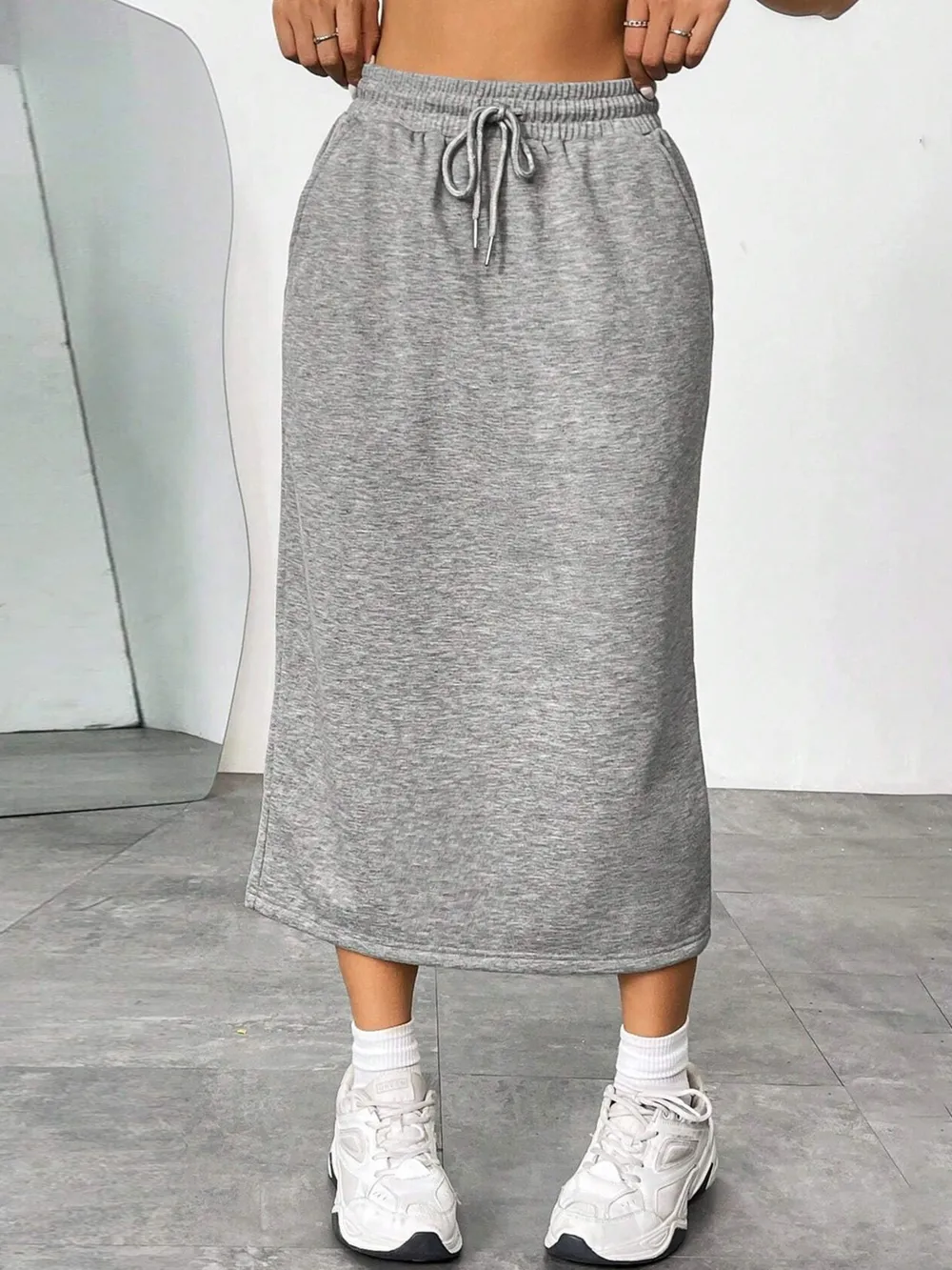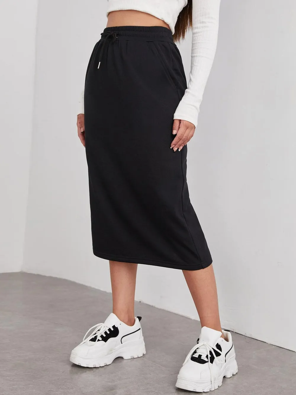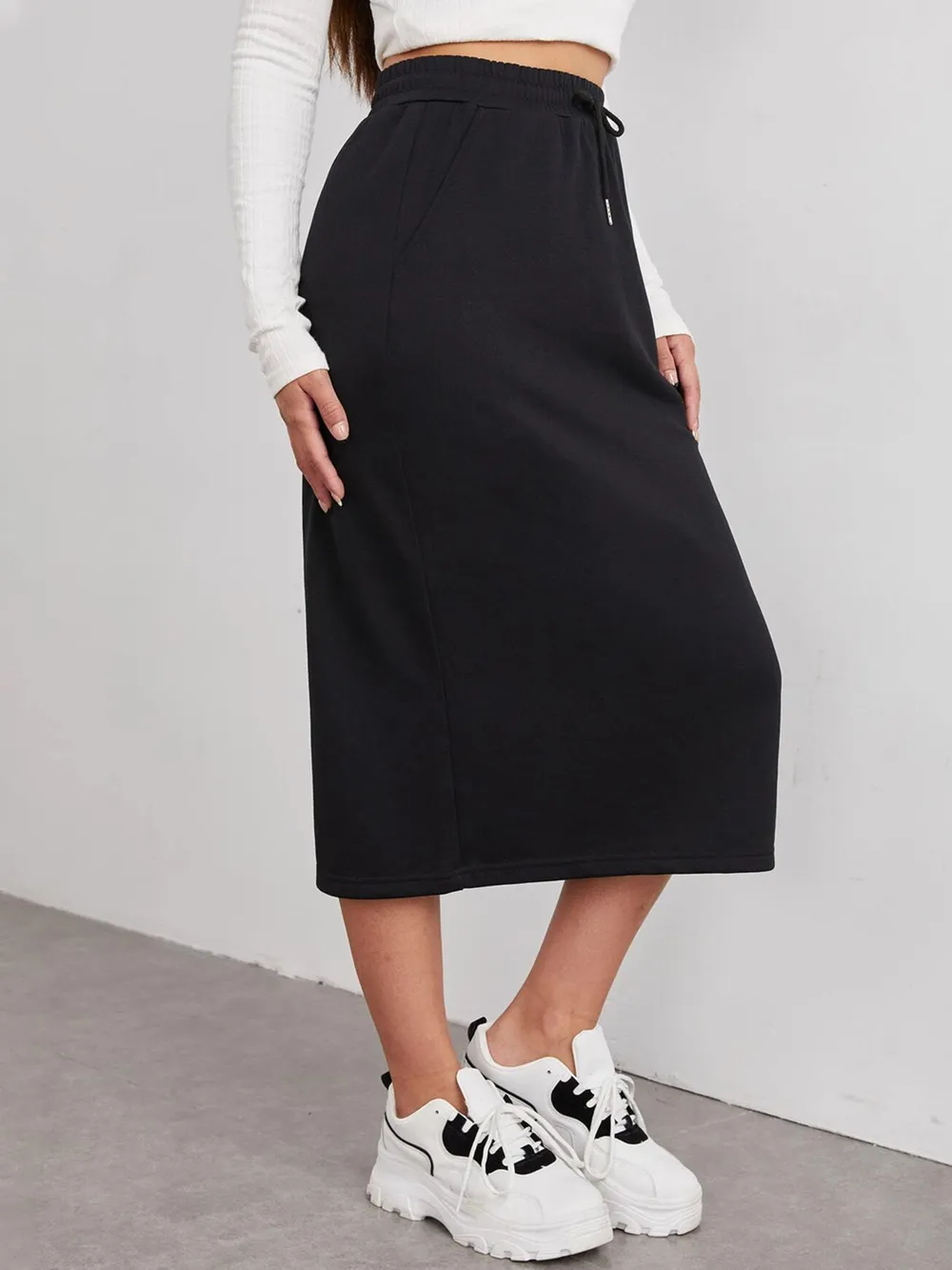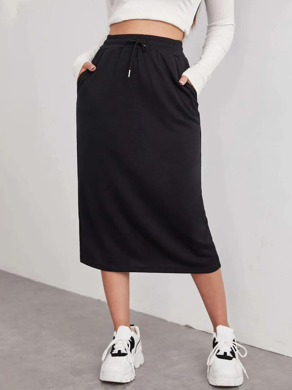 Slit Drawstring Midi Skirt