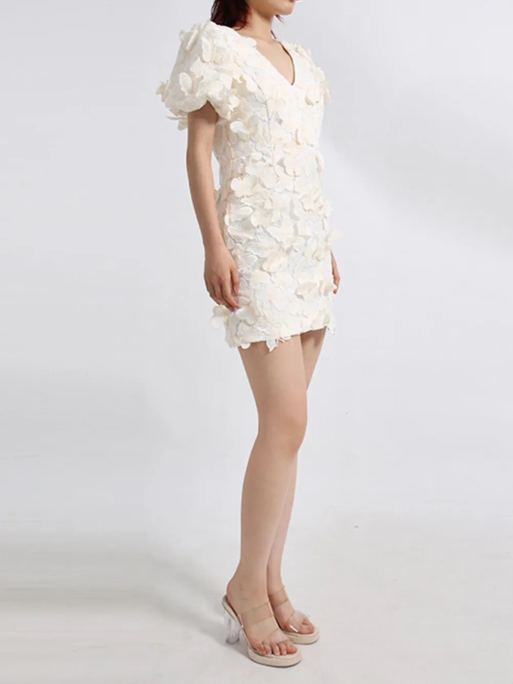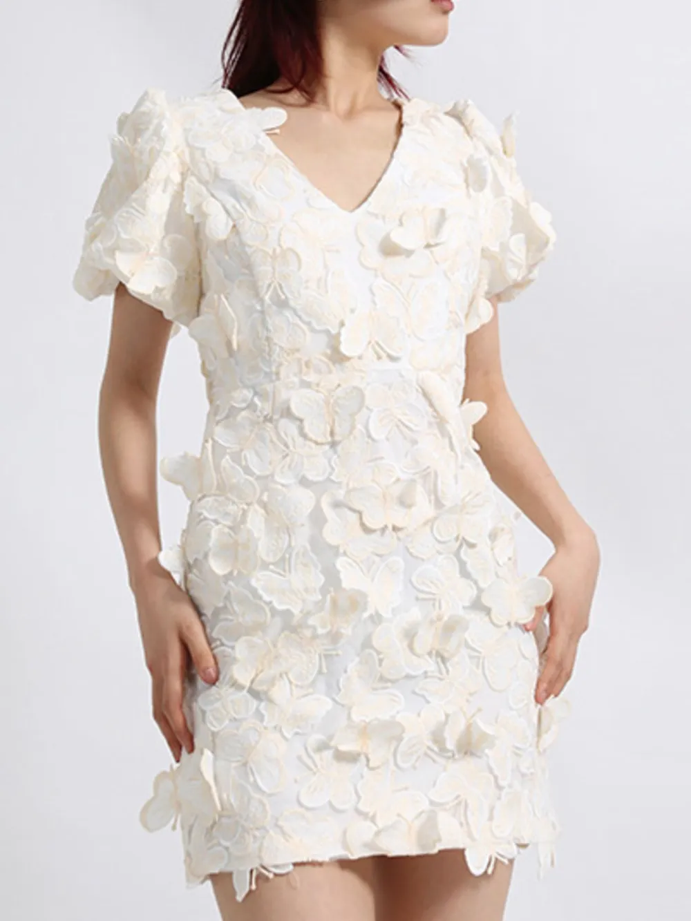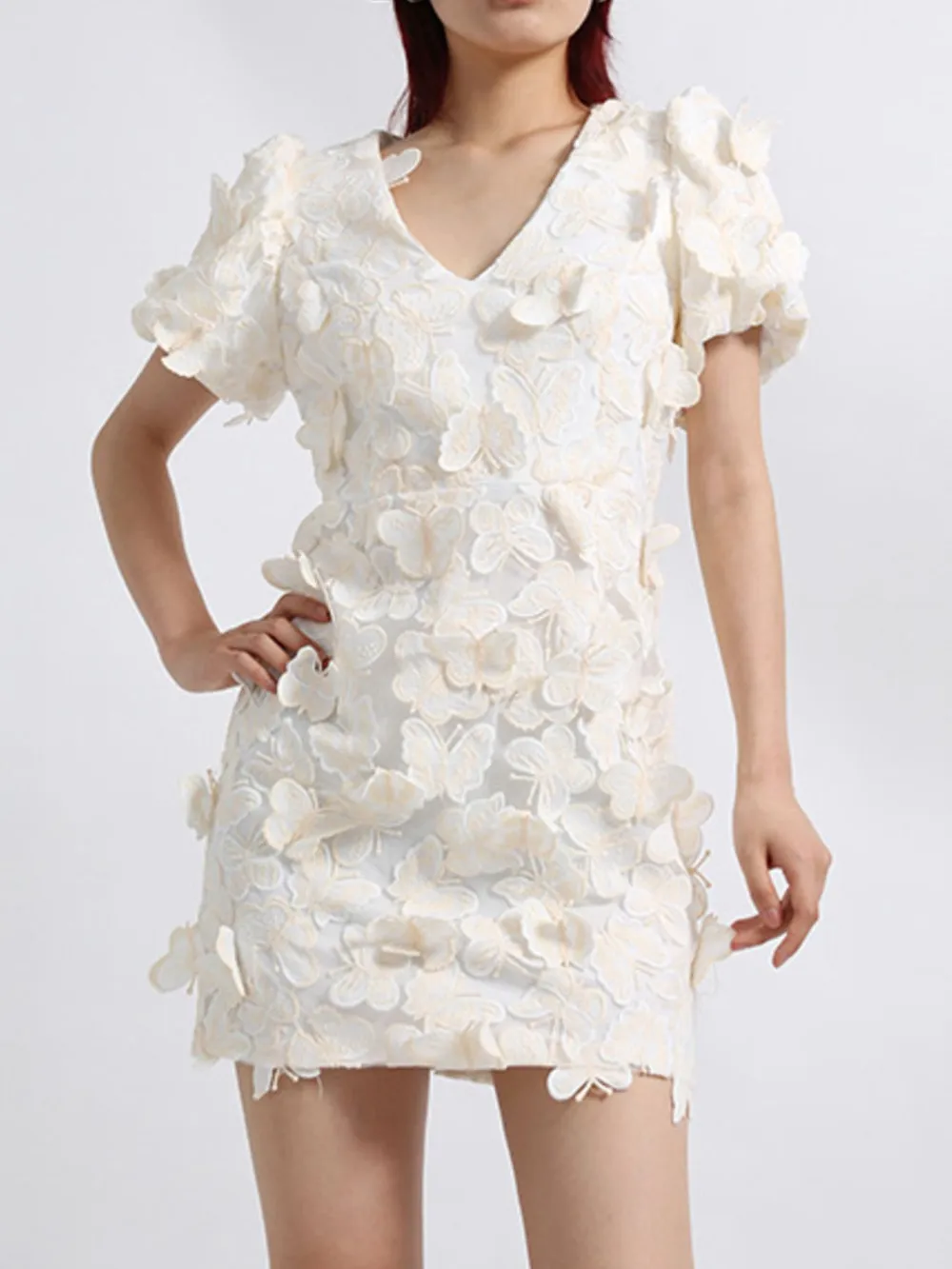 Butterfly V-Neck Puff Sleeve Mini Dress
