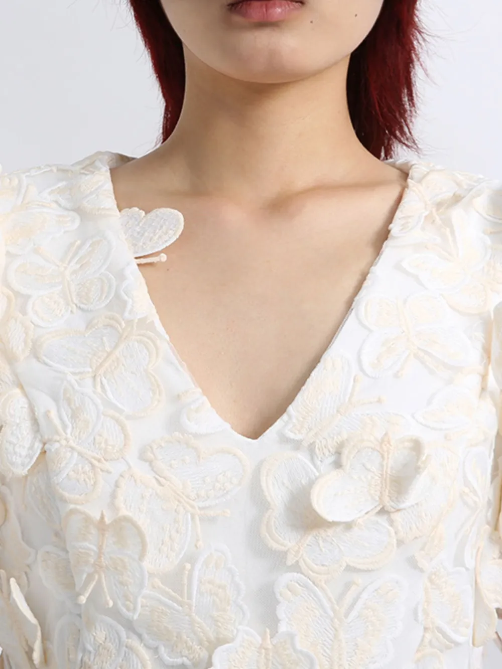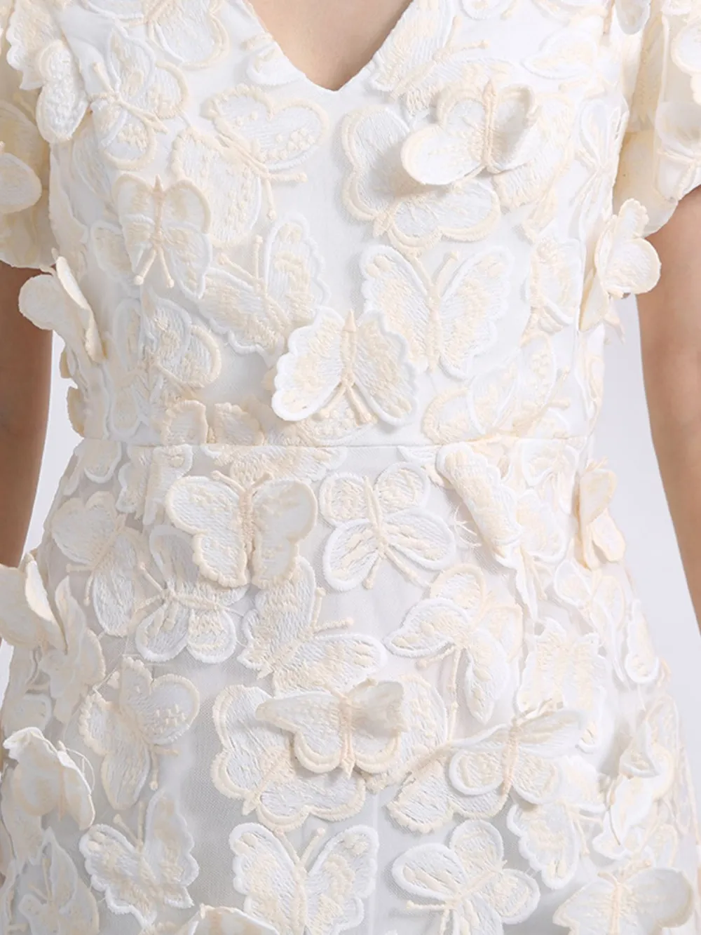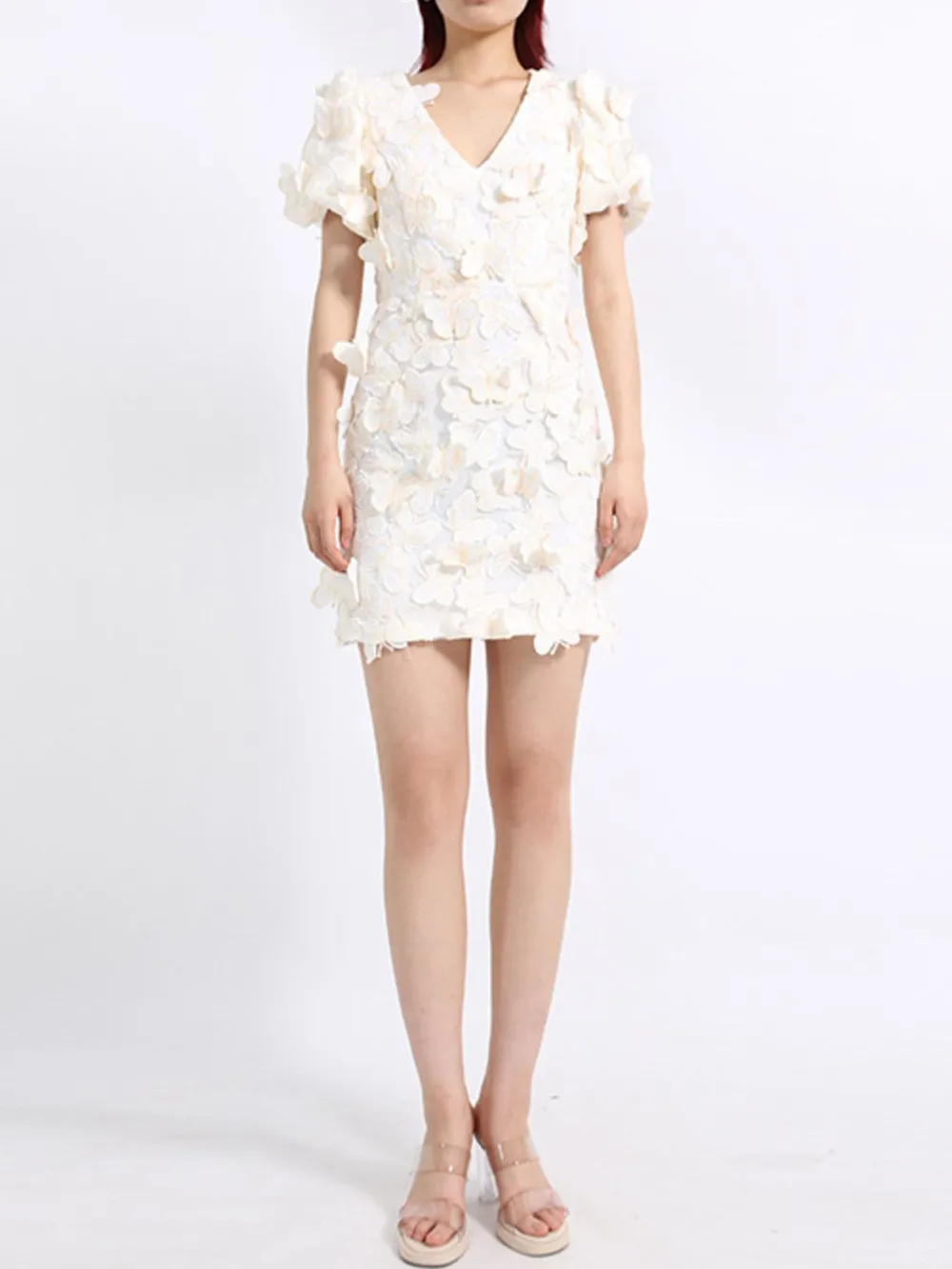 Butterfly V-Neck Puff Sleeve Mini Dress