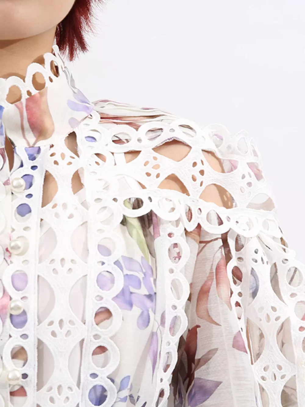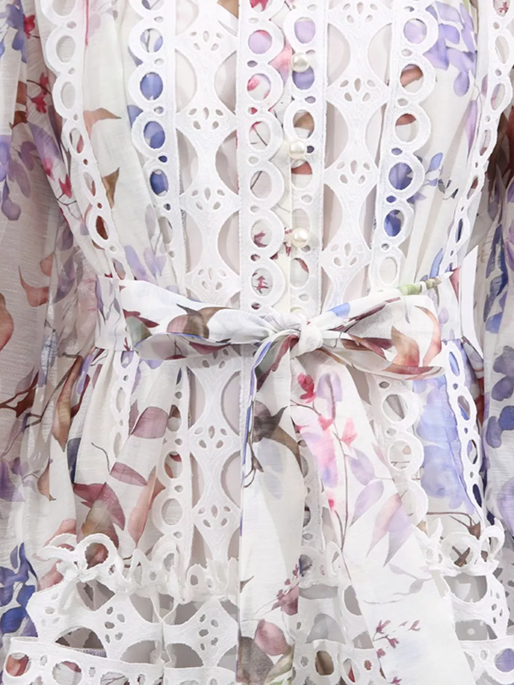 Lace Eyelet Mini Dress with Balloon Sleeves