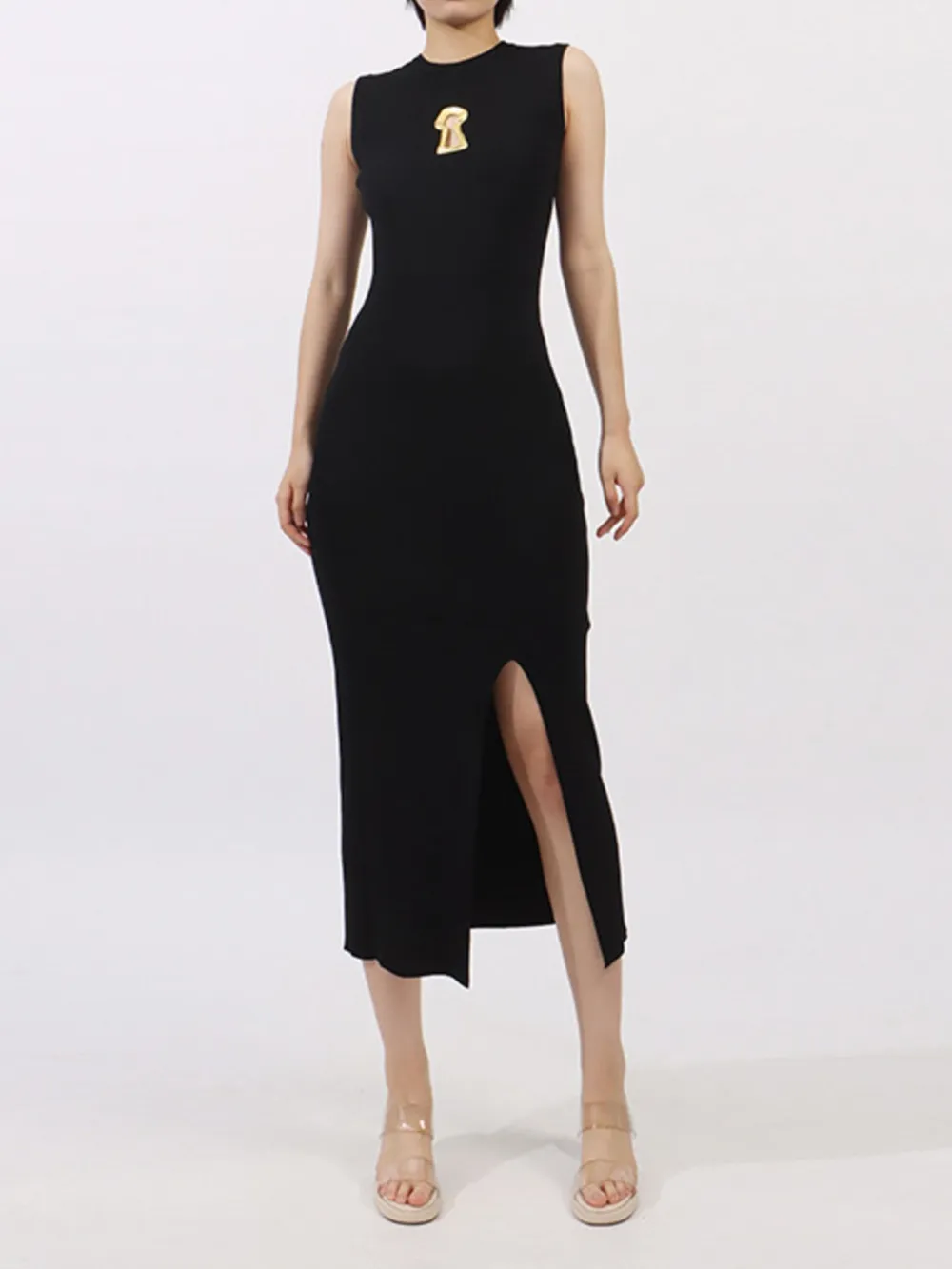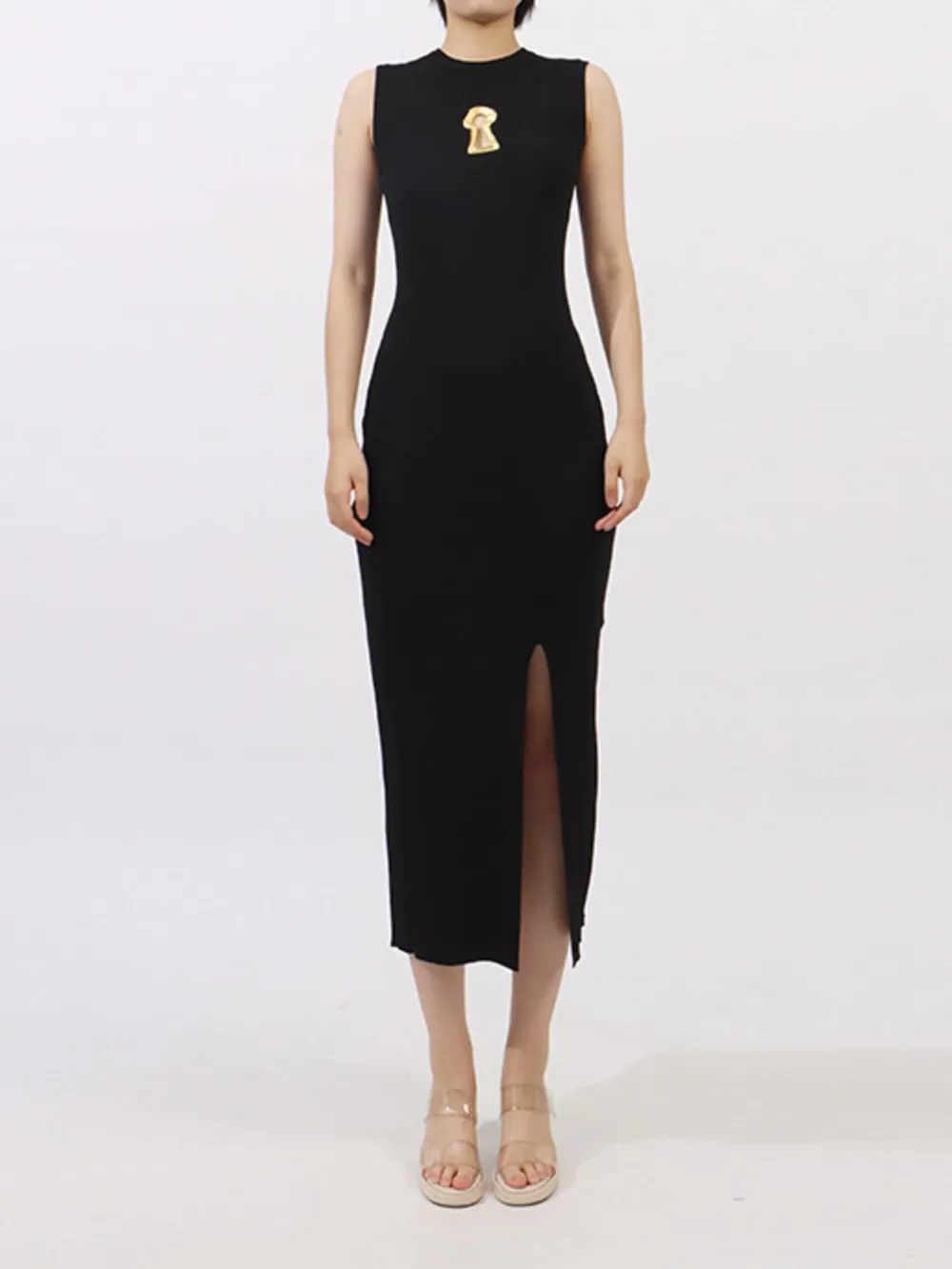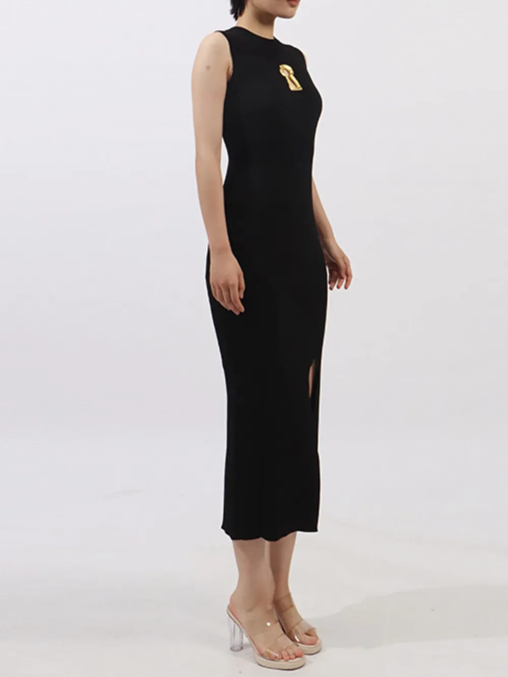 Slit Round Neck Sleeveless Dress