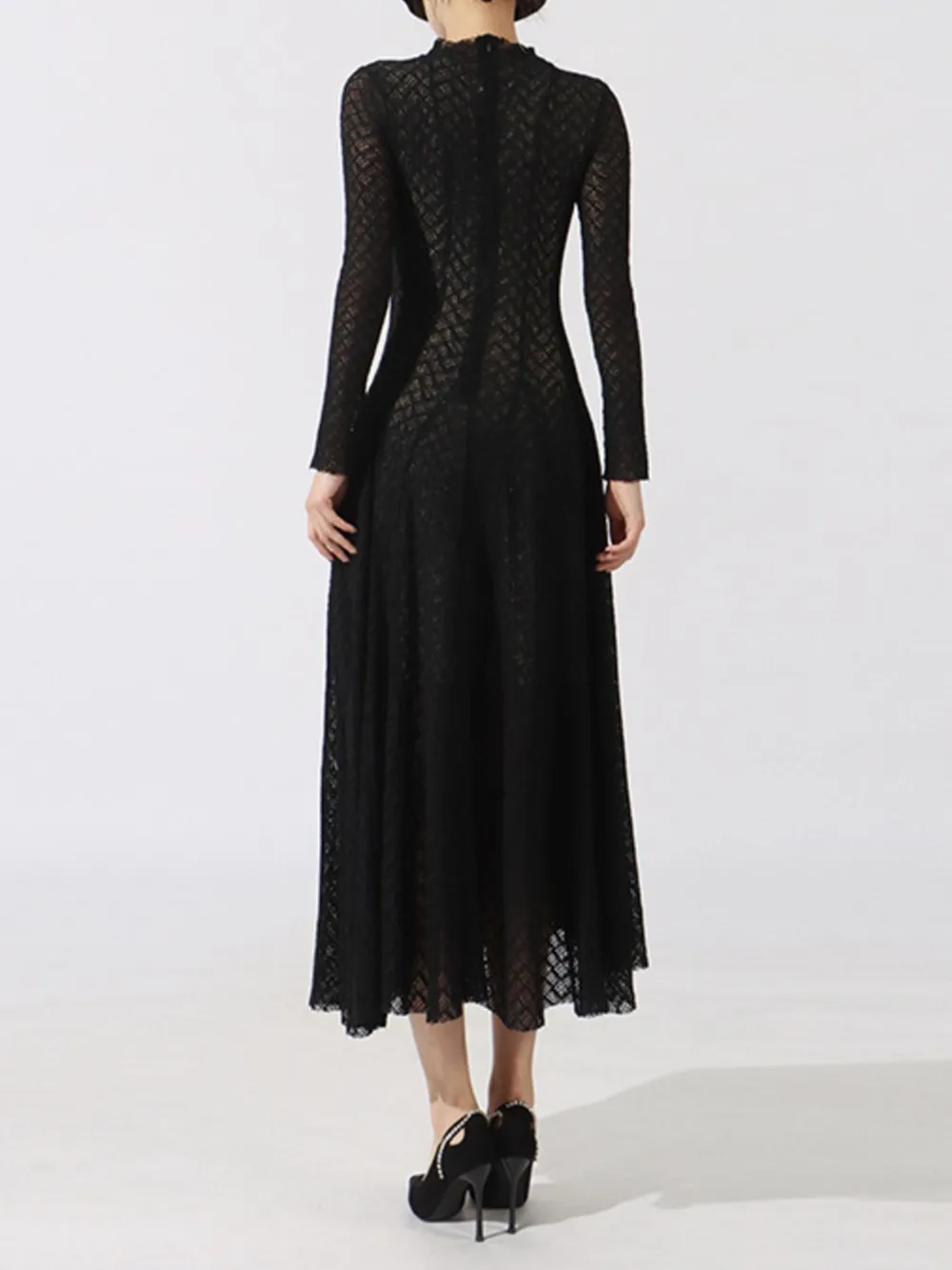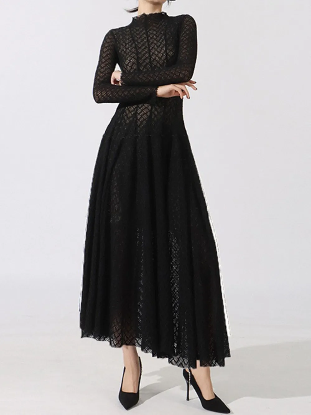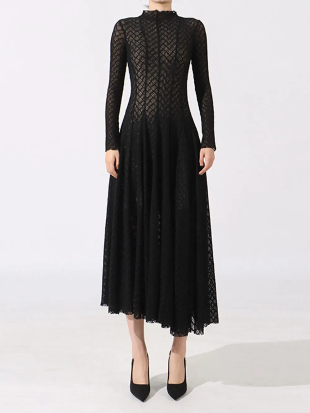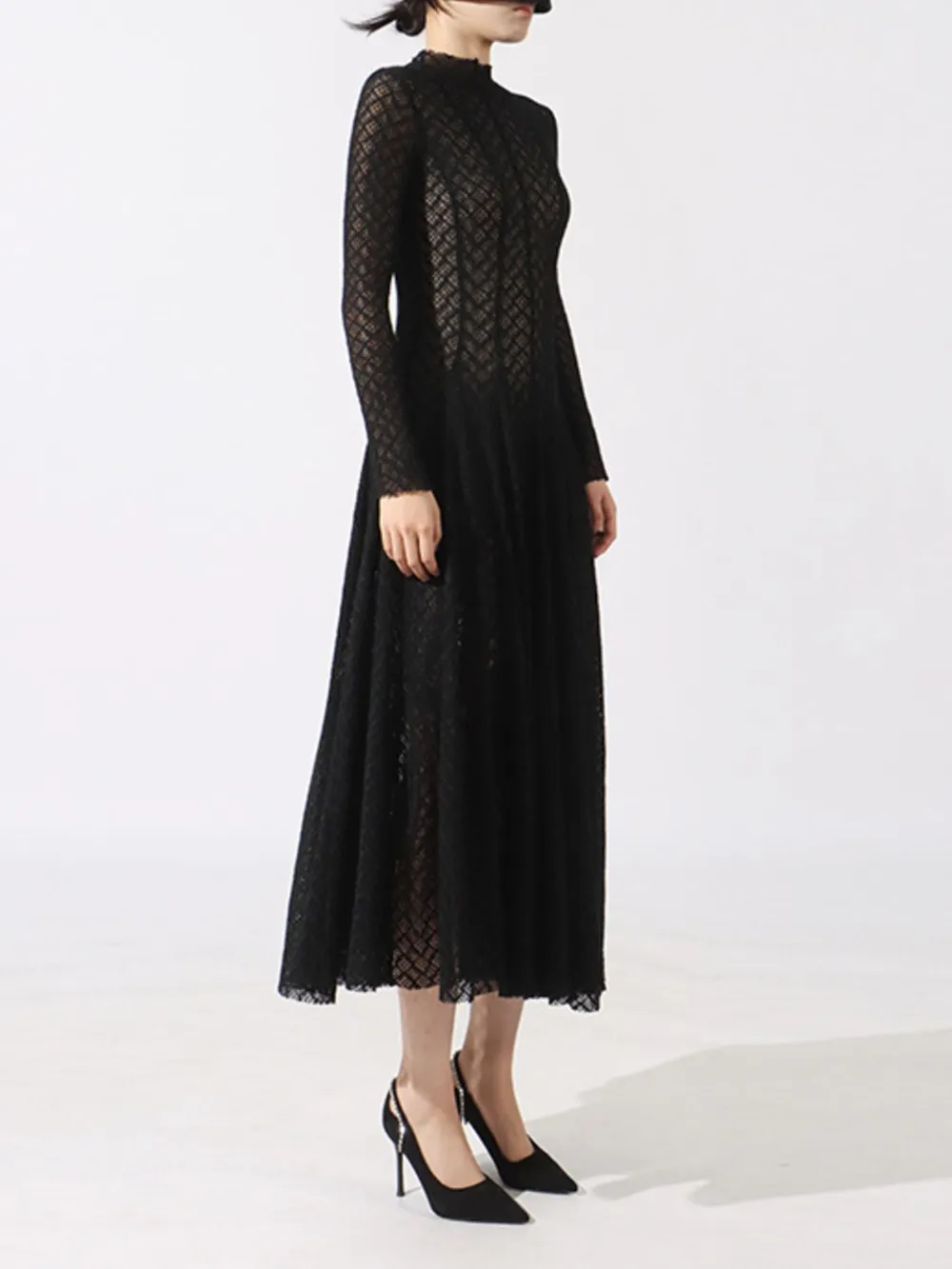 Lace Mock Neck Long Sleeve Dress