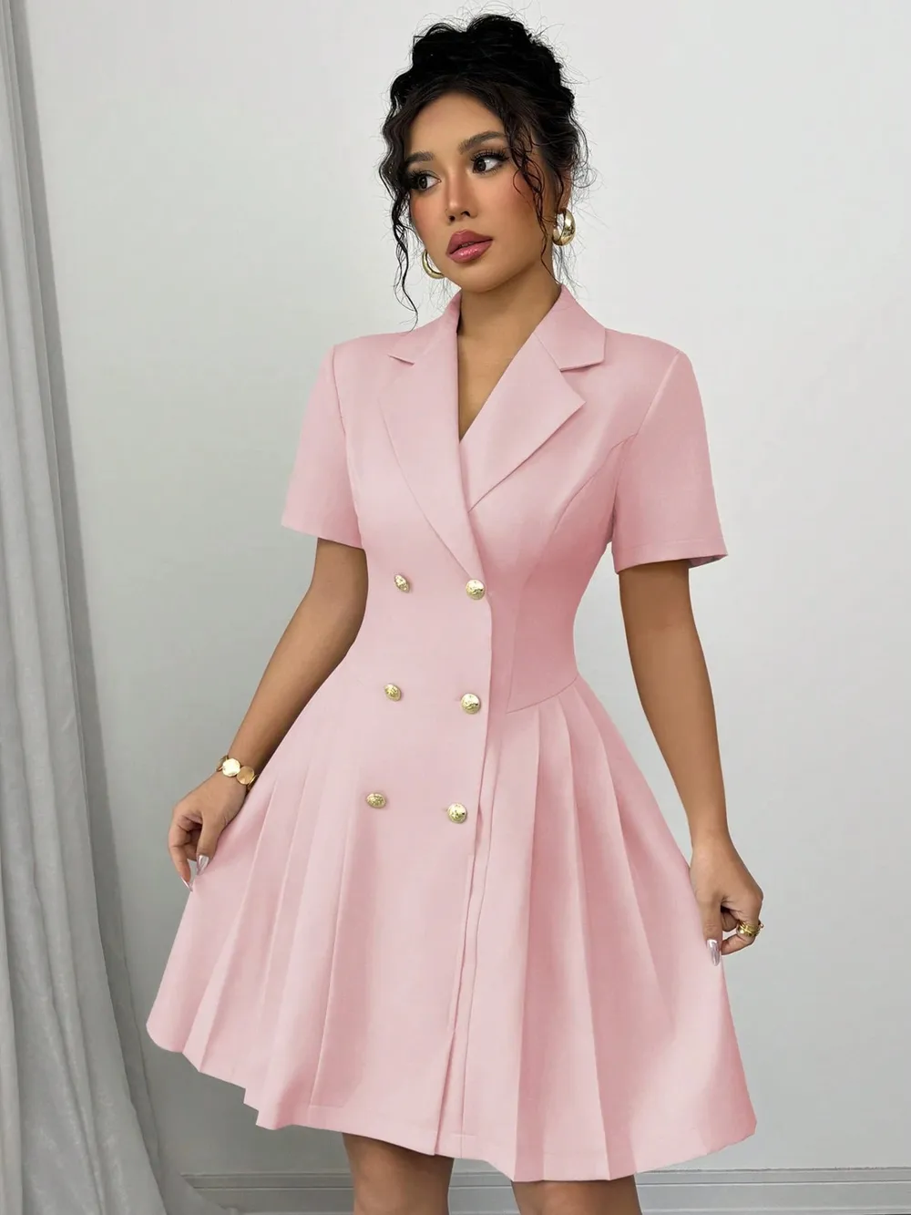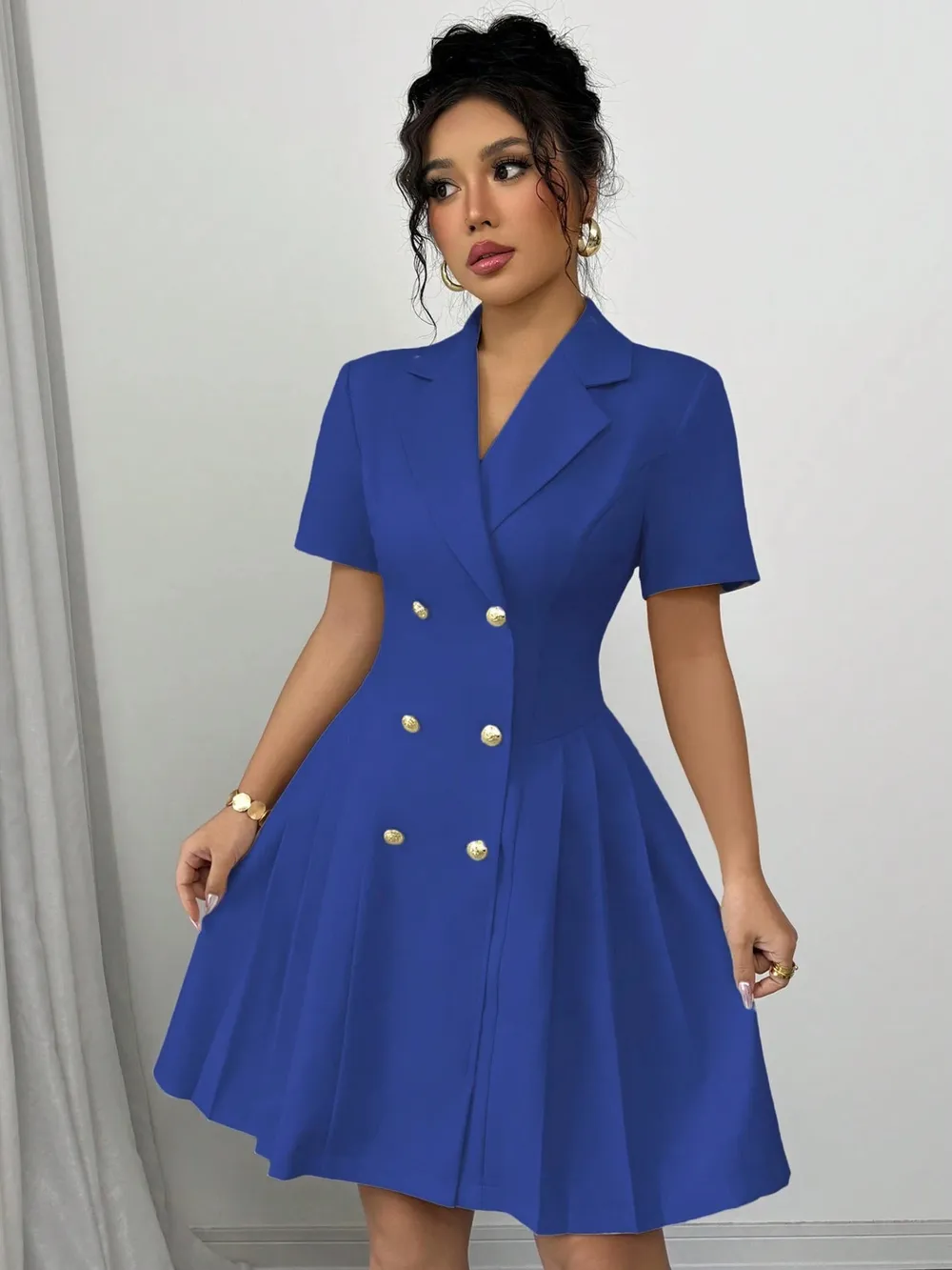 Double-Breasted Short Sleeve Dress