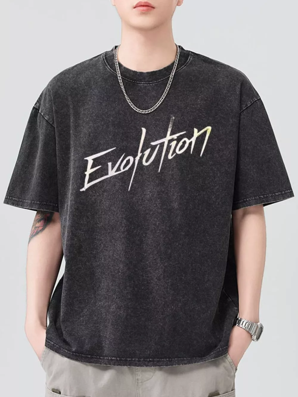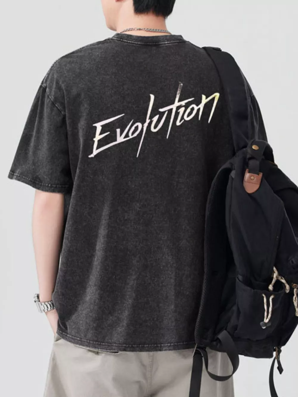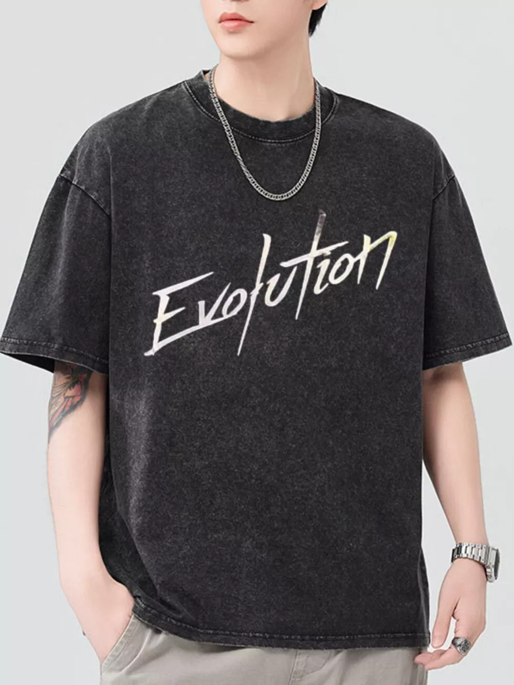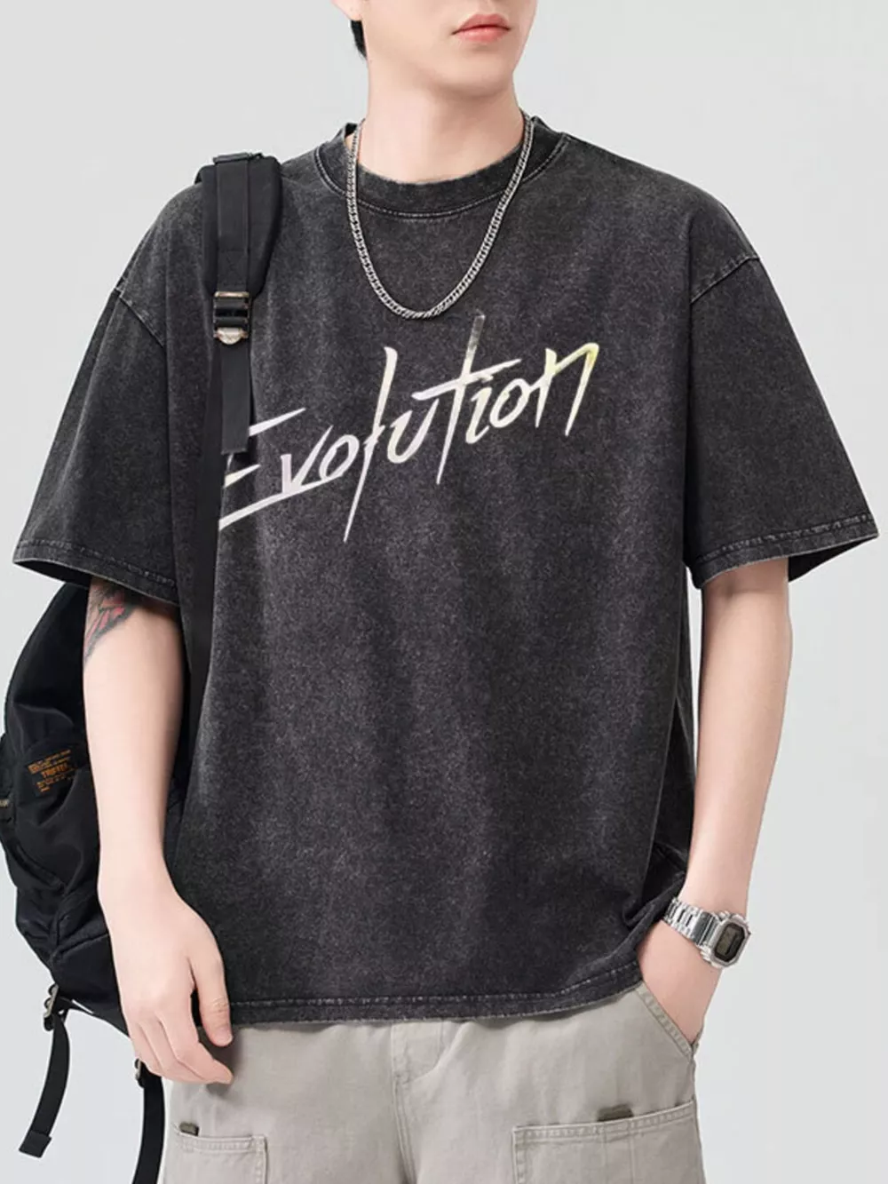 Men's Letter Round Neck Short Sleeve T-Shirt