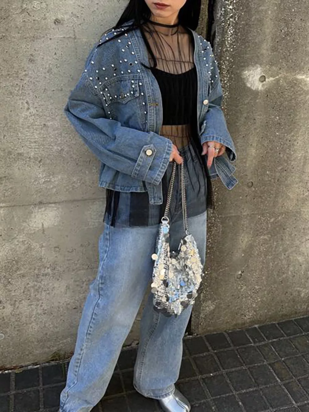 Studded Button Up Denim Jacket