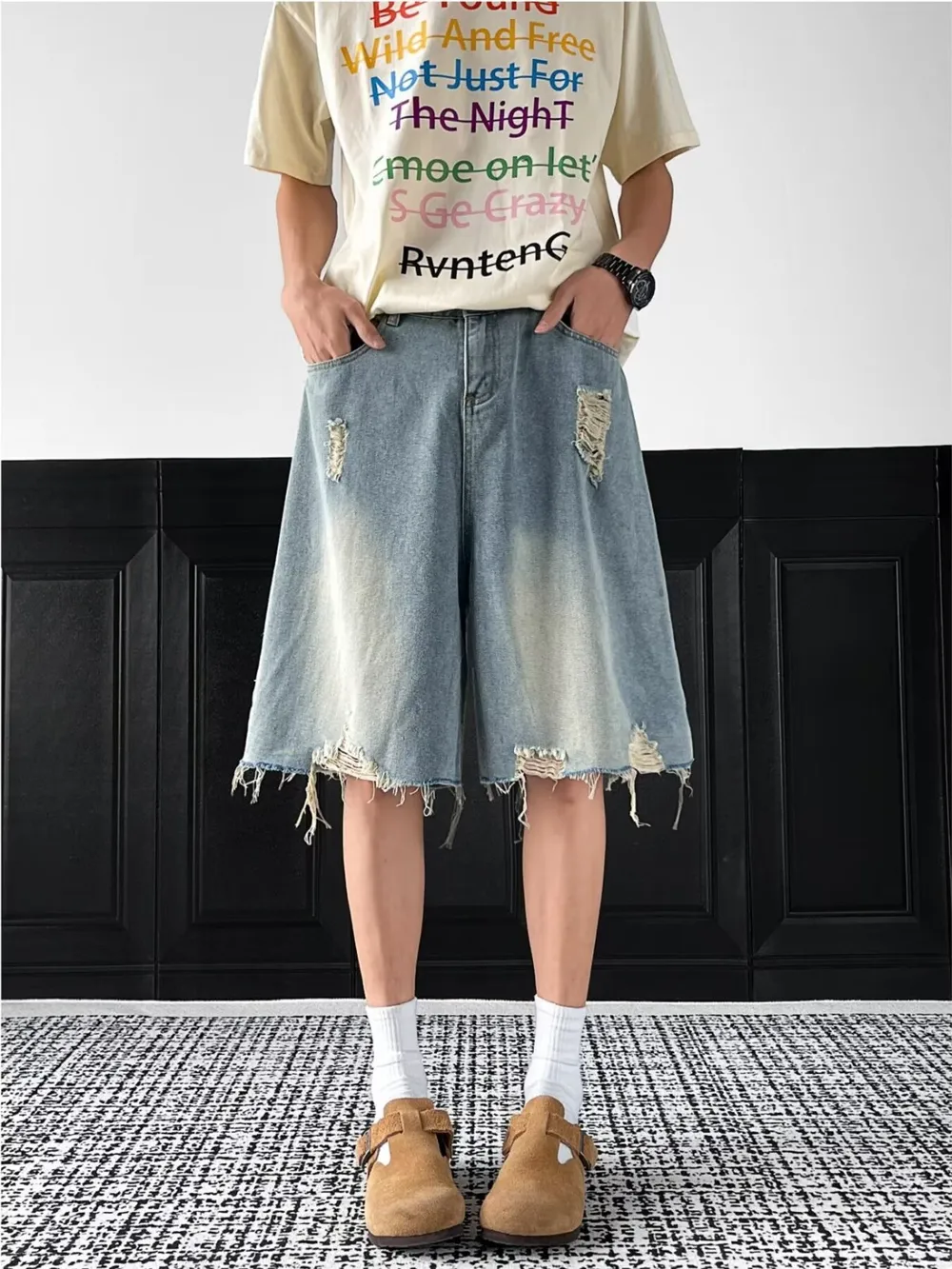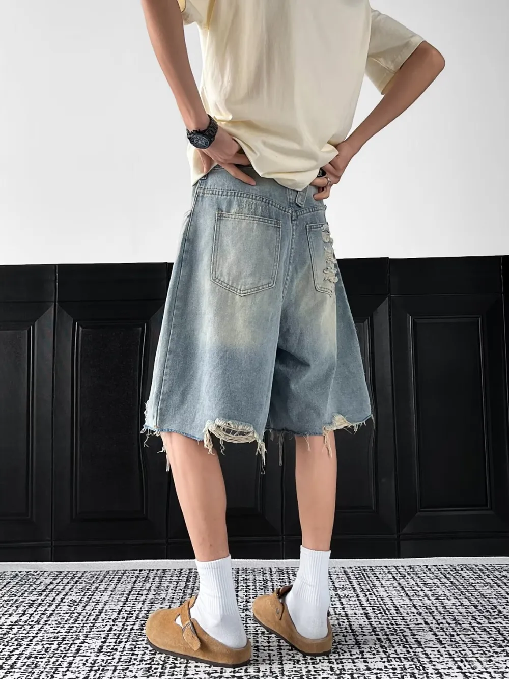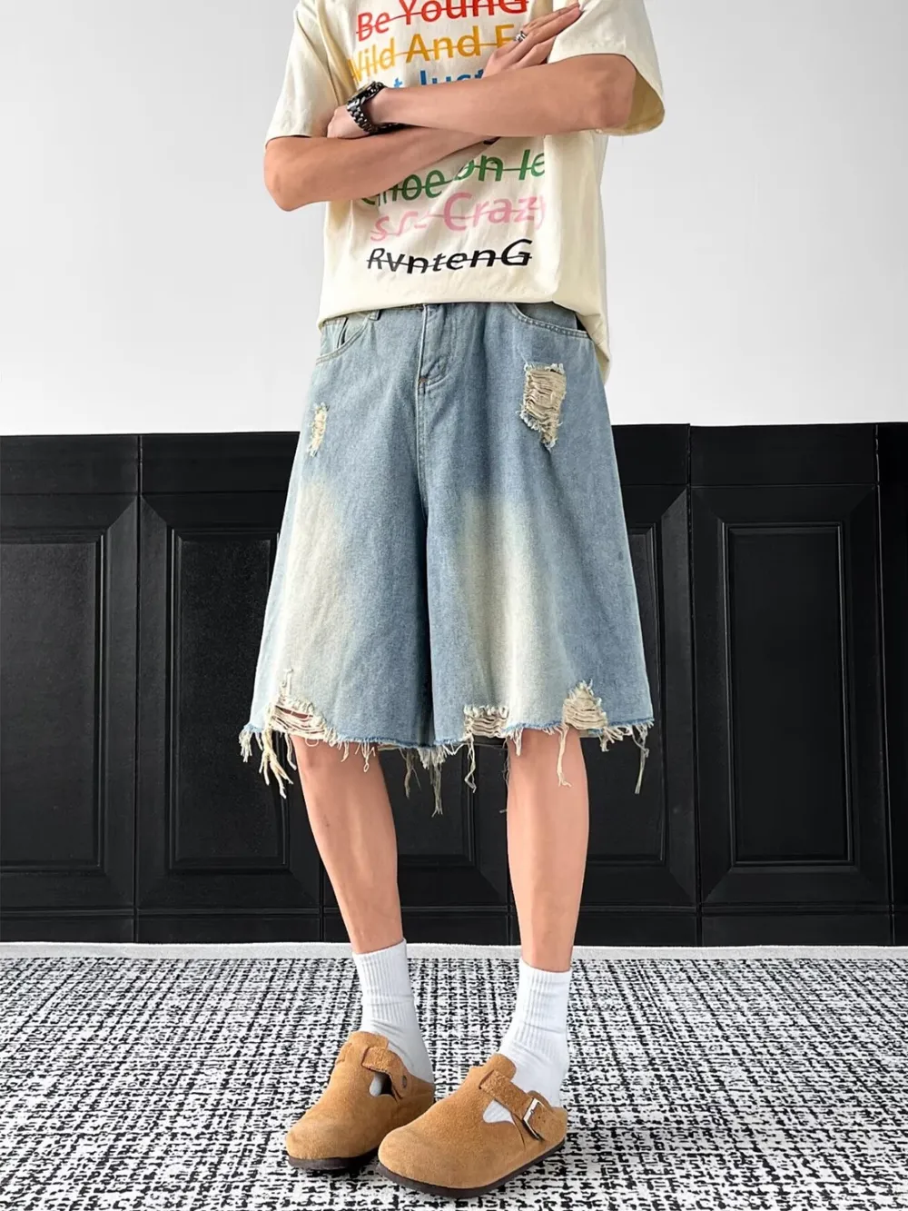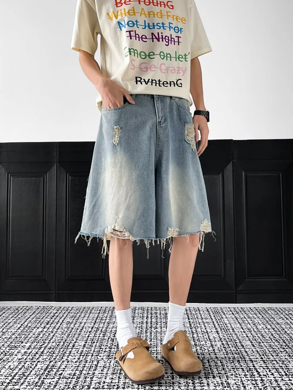 Men's Full Size Distressed Wide Leg Denim Shorts Plus Size