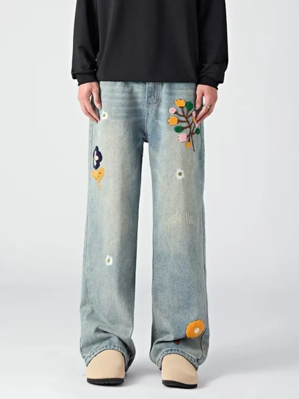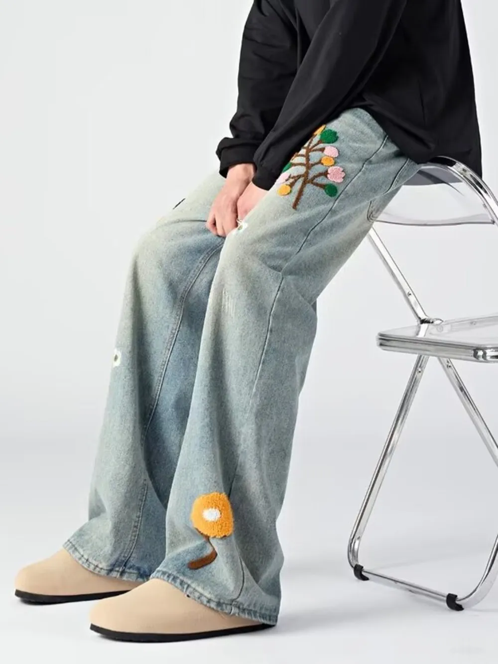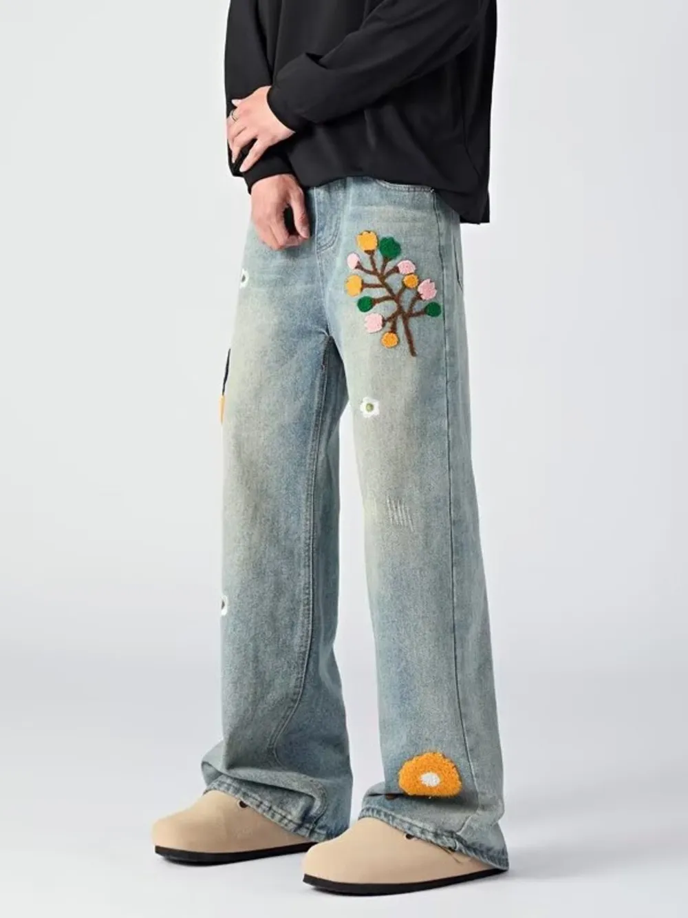 Men's Embroidered Wide Leg Jeans