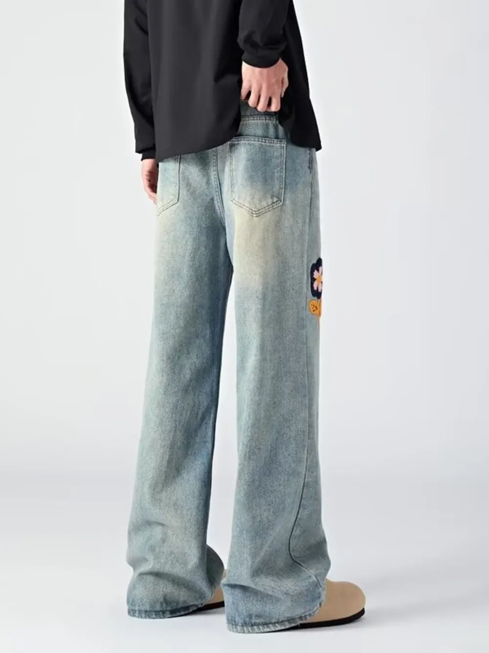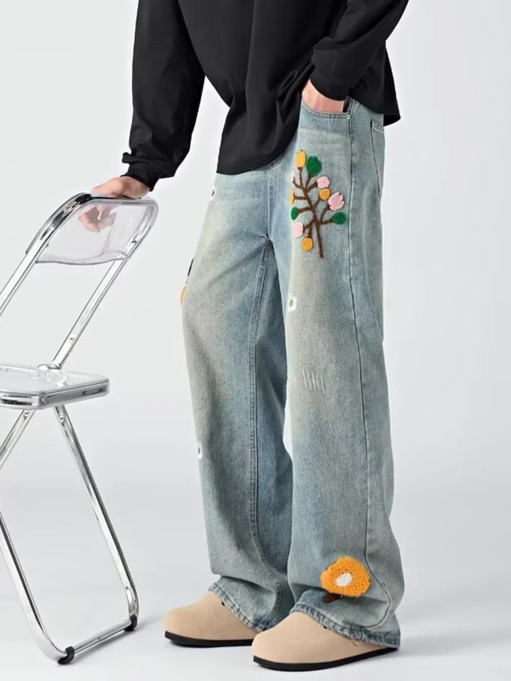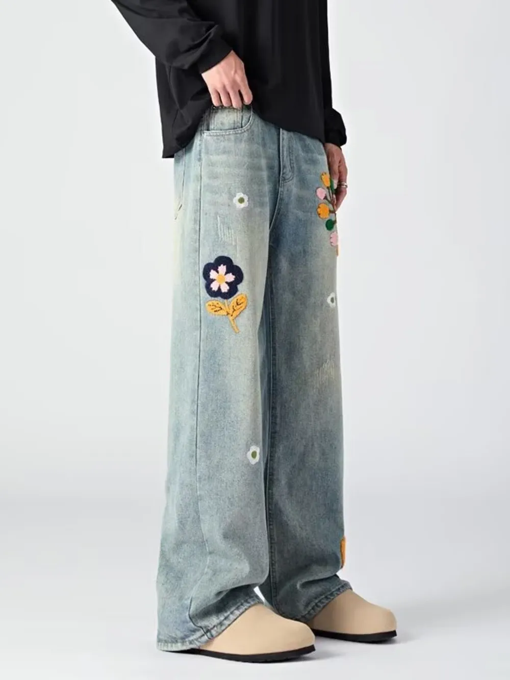 Men's Embroidered Wide Leg Jeans