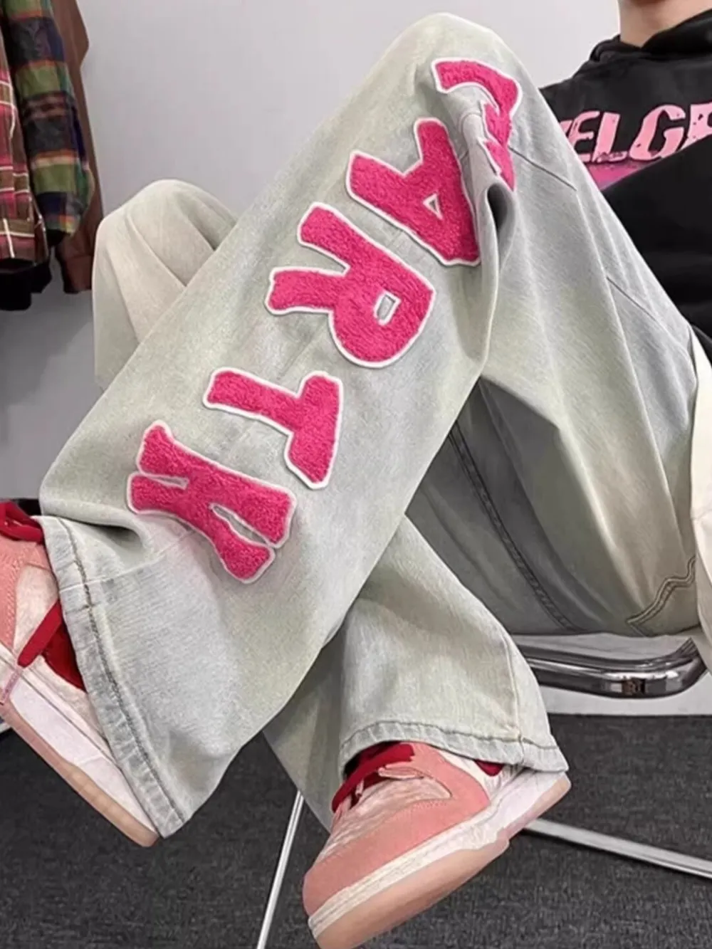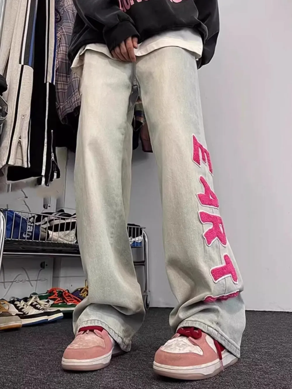 Men's Full Size Letter Washed Wide Leg Jeans Plus Size