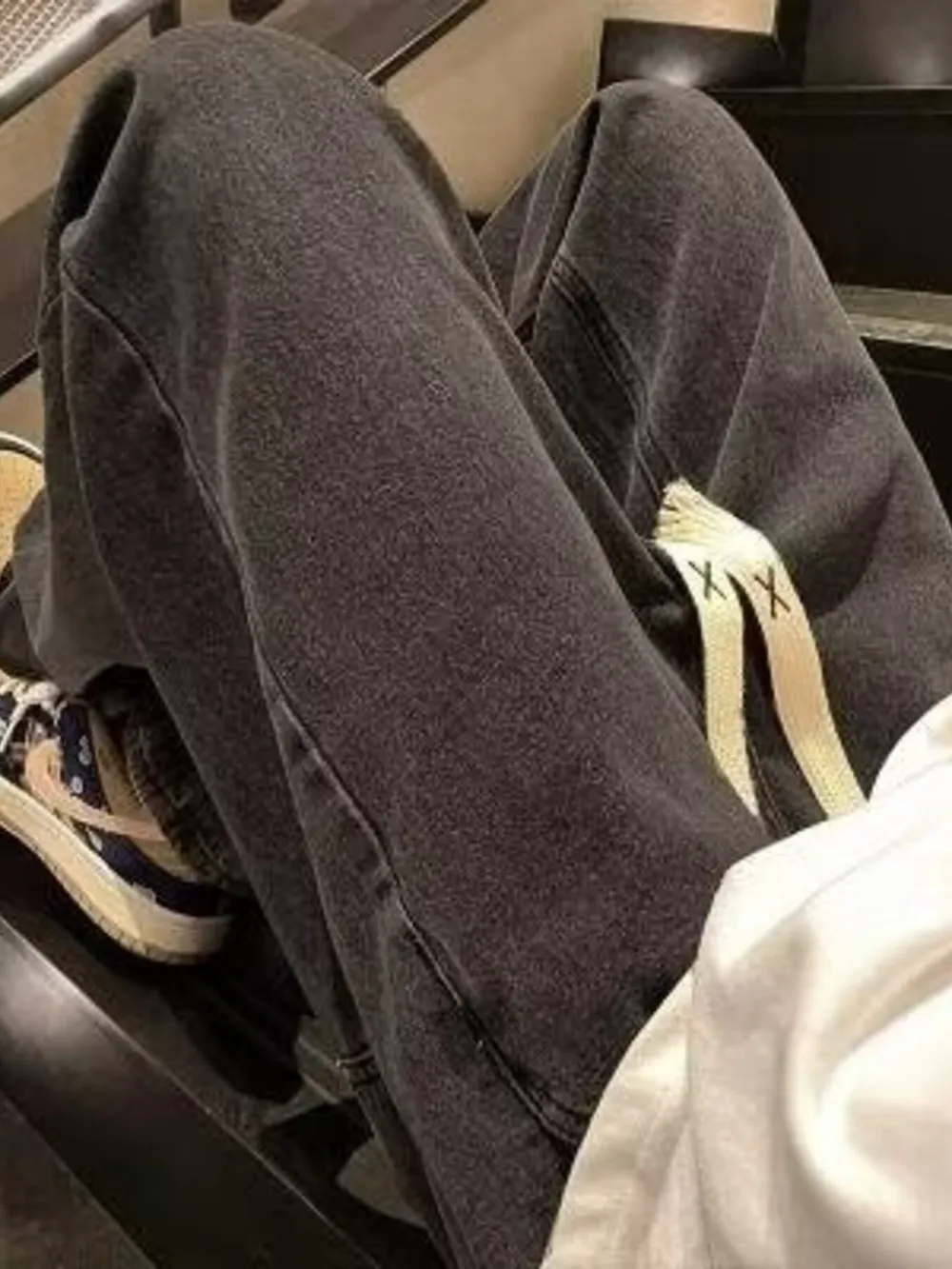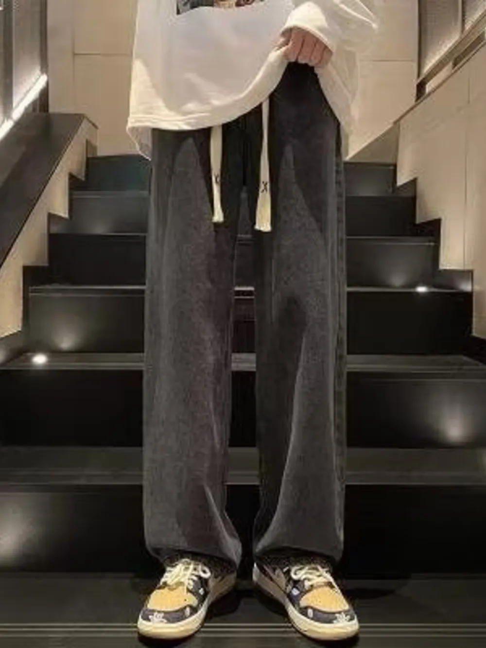 Men's Full Size Loose Fit Drawstring Wide Leg Jeans Plus Size