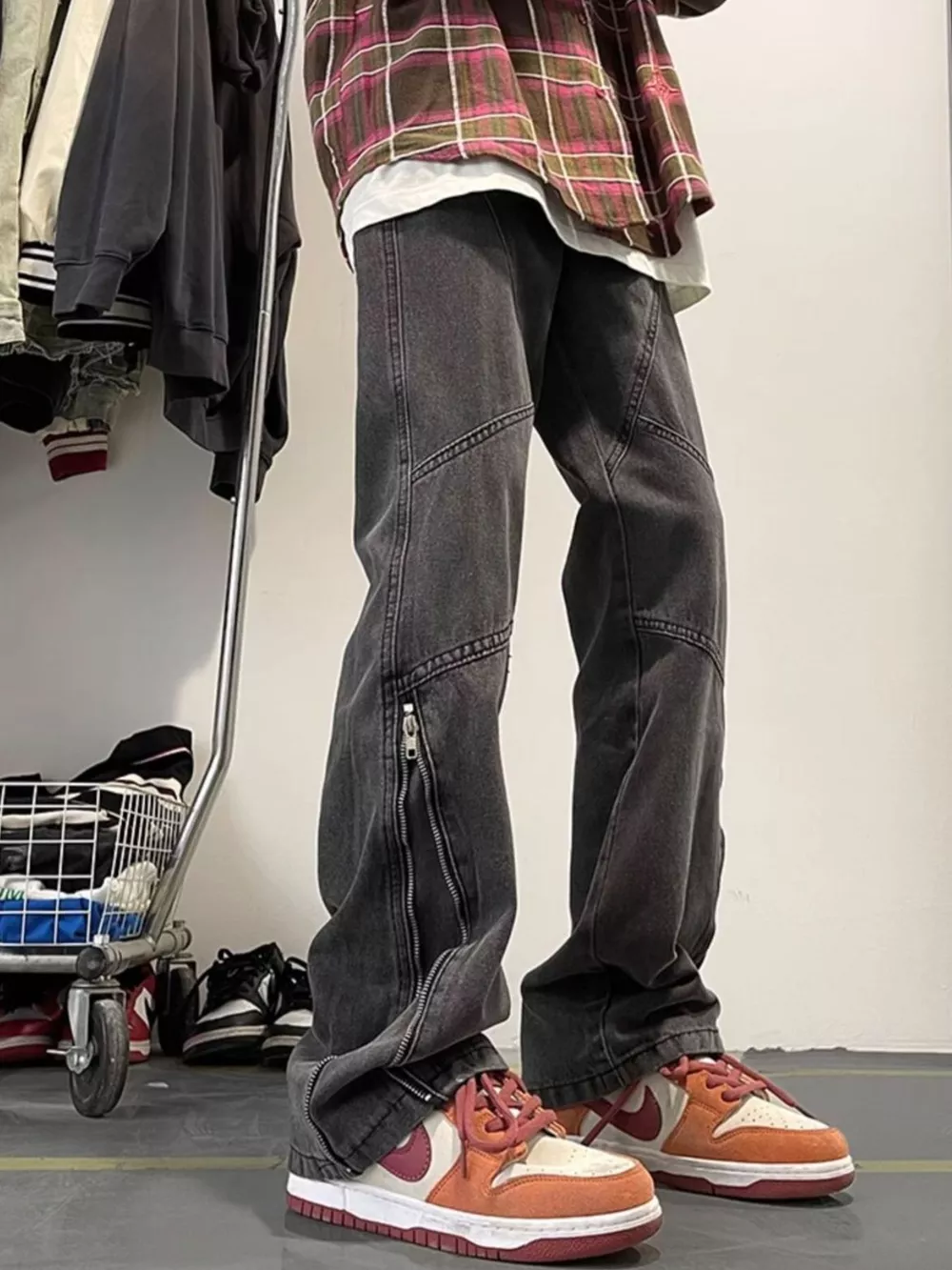 Men's Full Size Zipper Detail Relaxed Fit Jeans Plus Size
