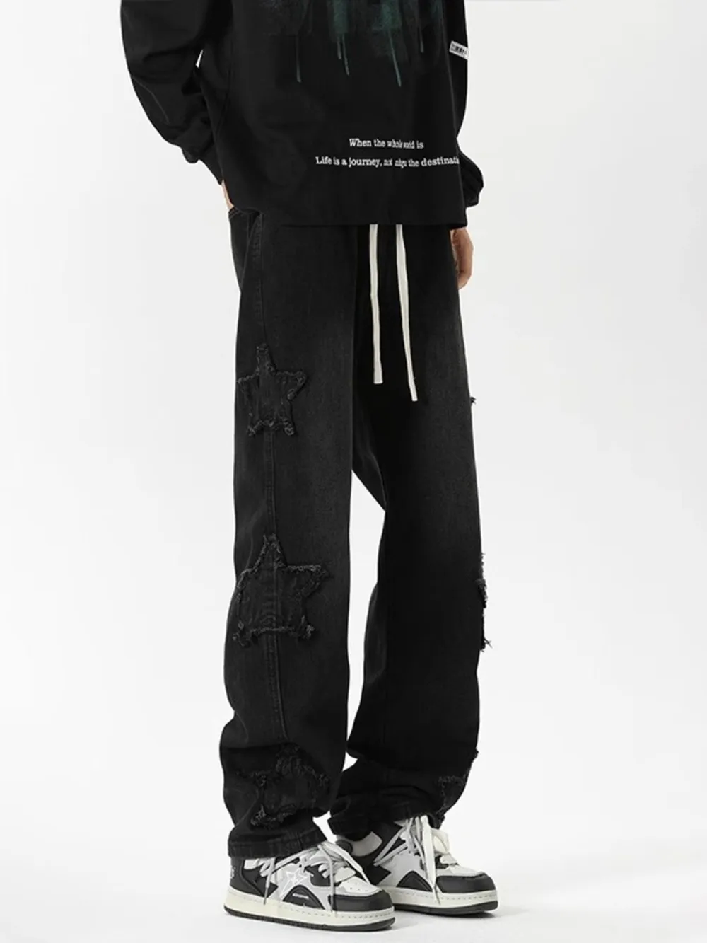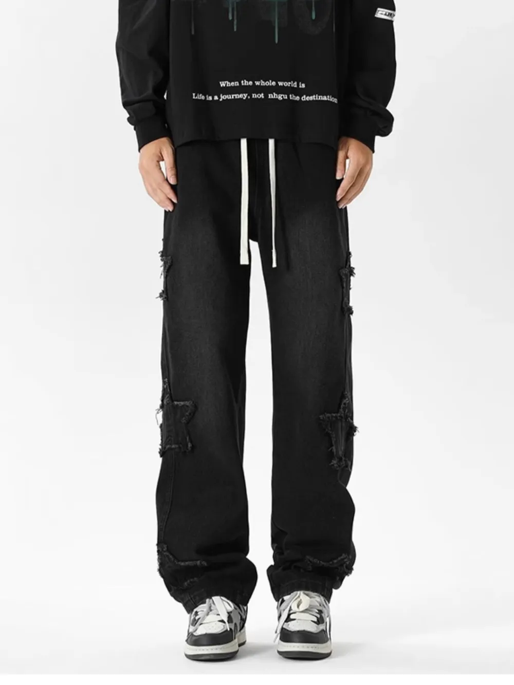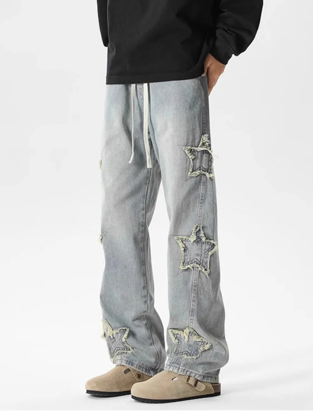Men's Full Size Star Wide Leg Jeans Plus Size