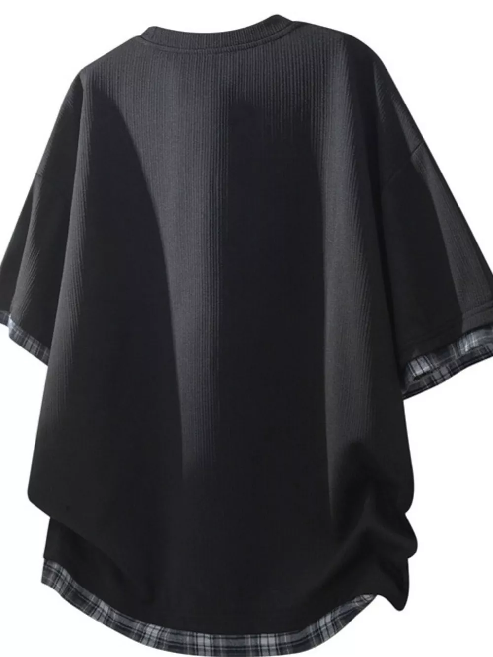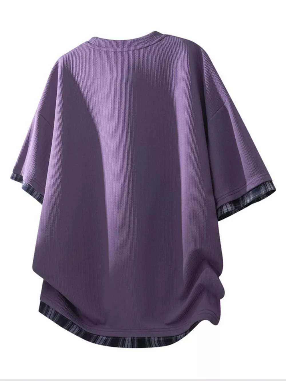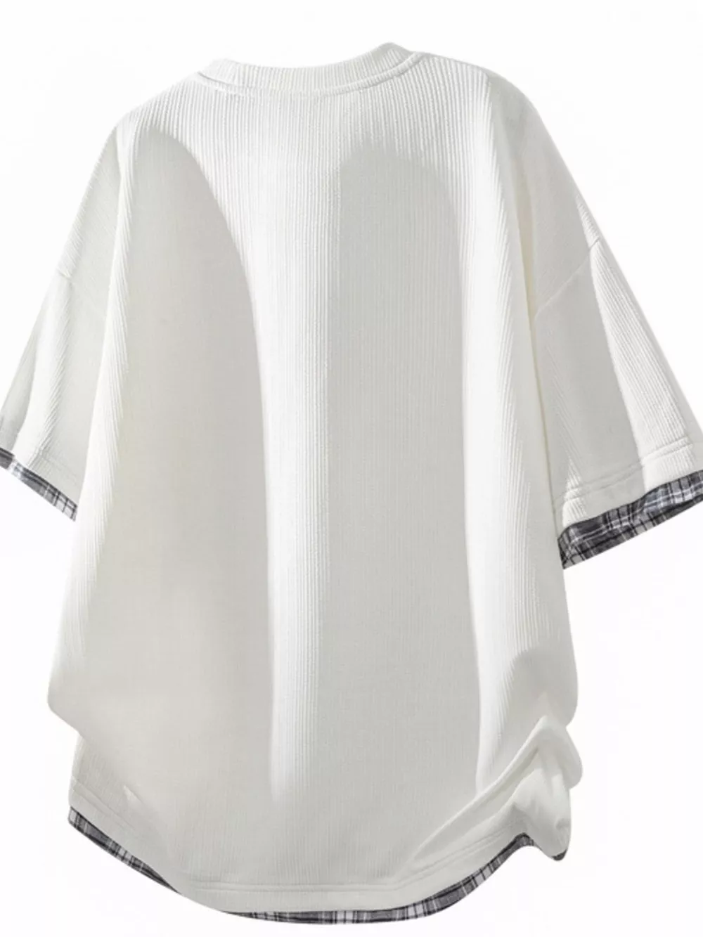 Men's Plus Size Short Sleeve Round Neck Plaid Trim T-Shirt