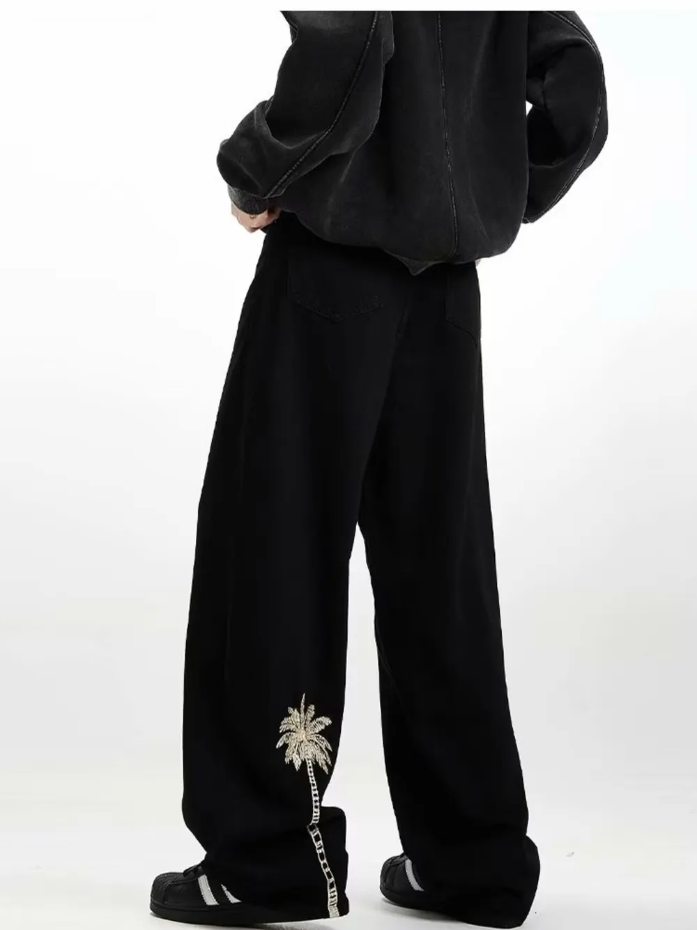 Men's Embroidered Palm Tree Wide Leg Jeans