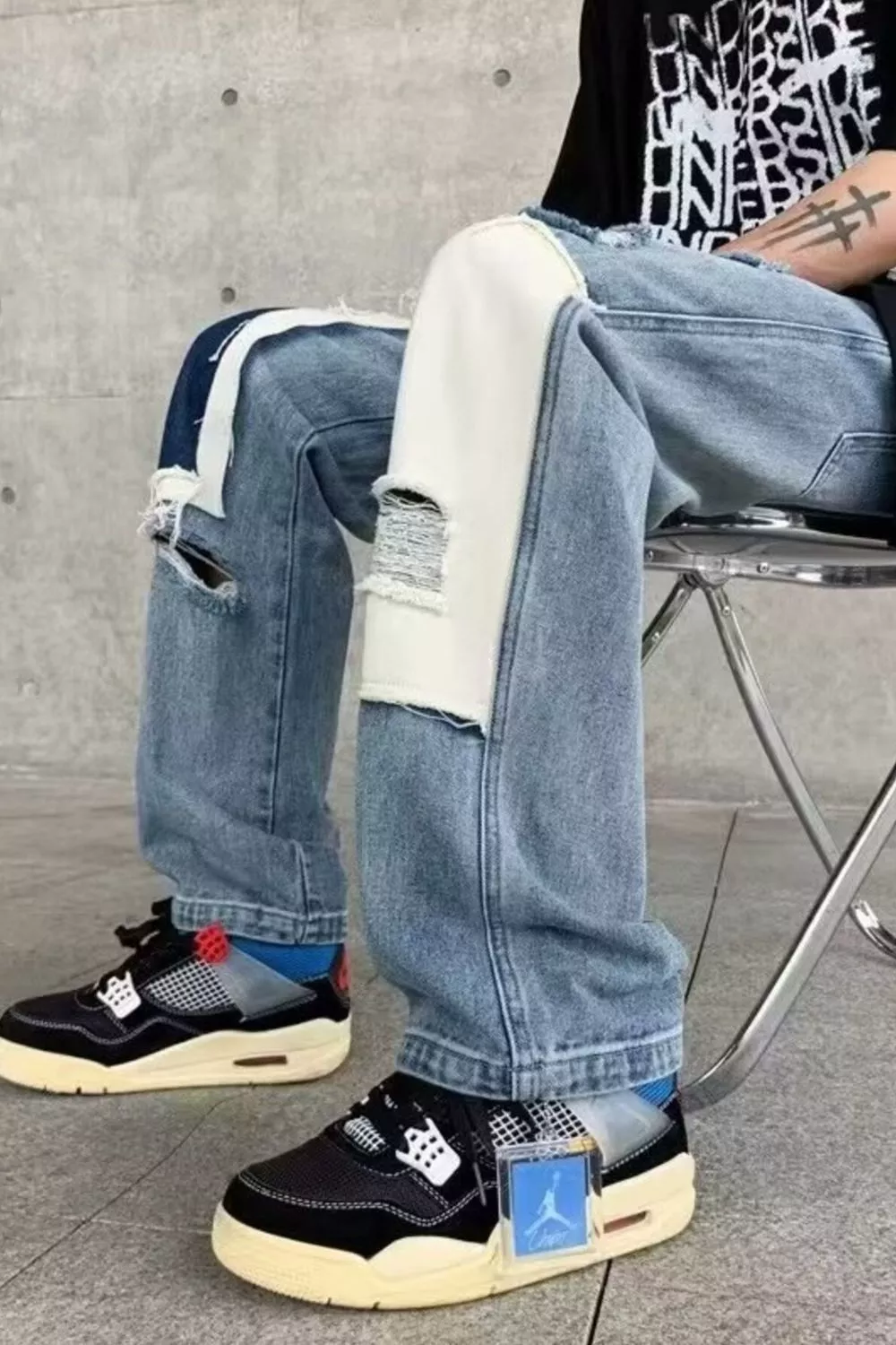 Men's Ripped Patchwork Wide Leg Jeans