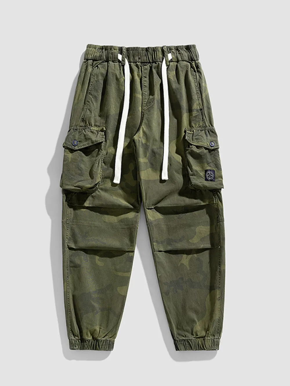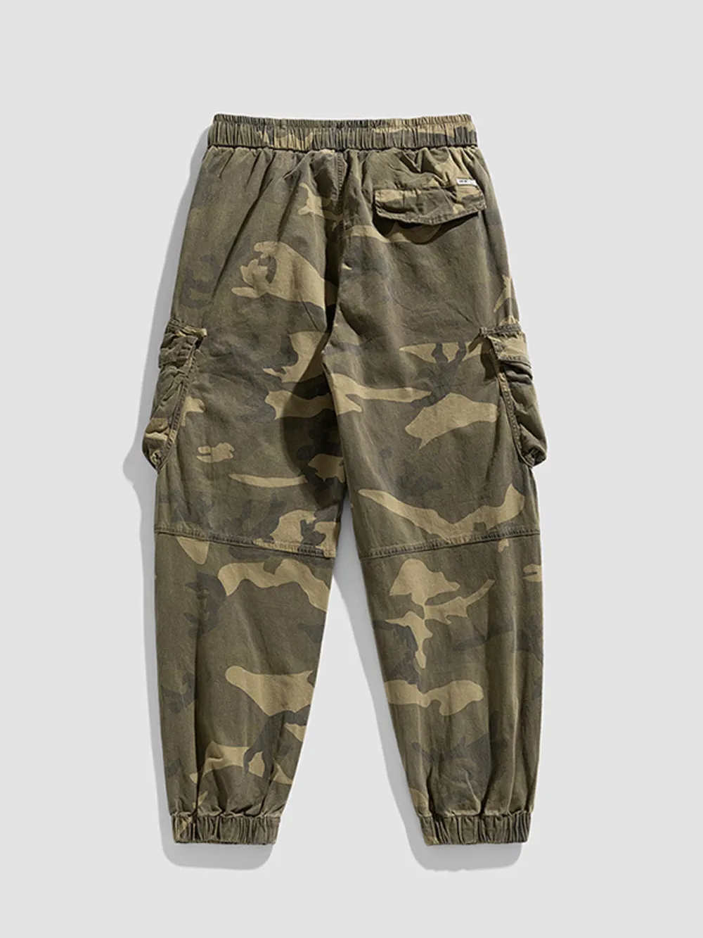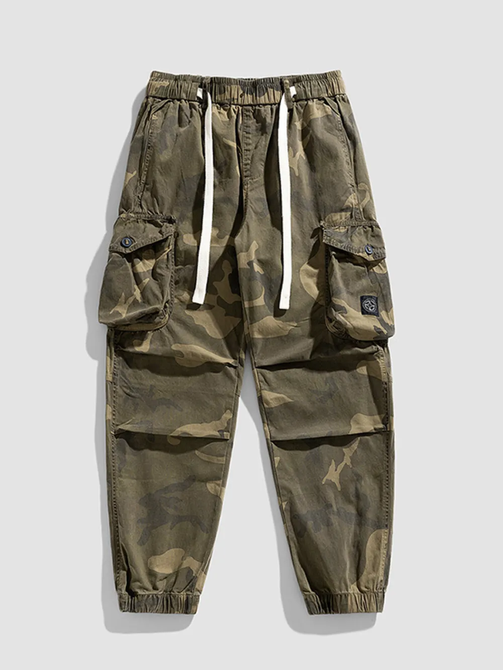 Men's Plus Size Camouflage Cargo Pants with Drawstring