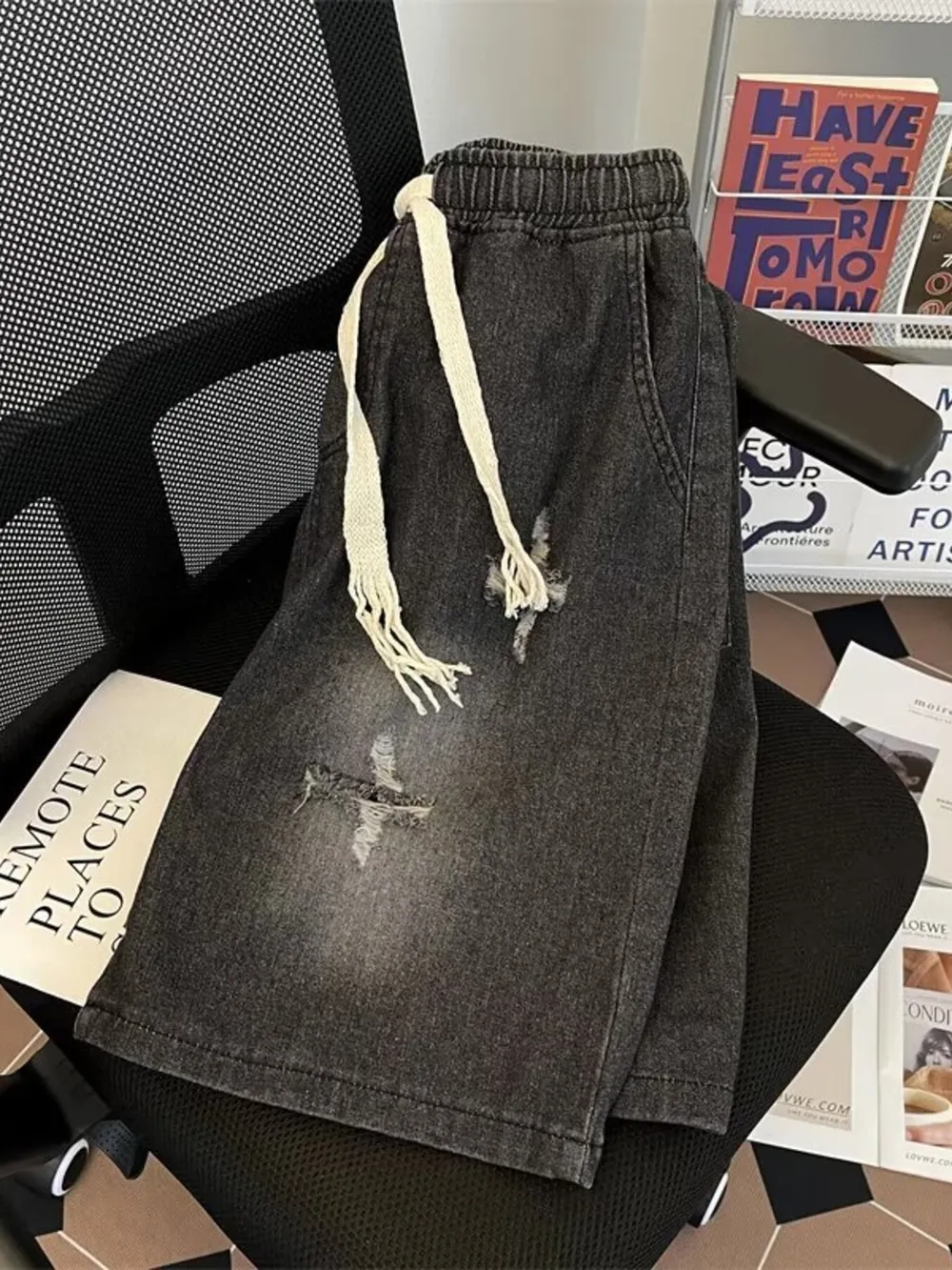 - Features:Distressed,Drawstring