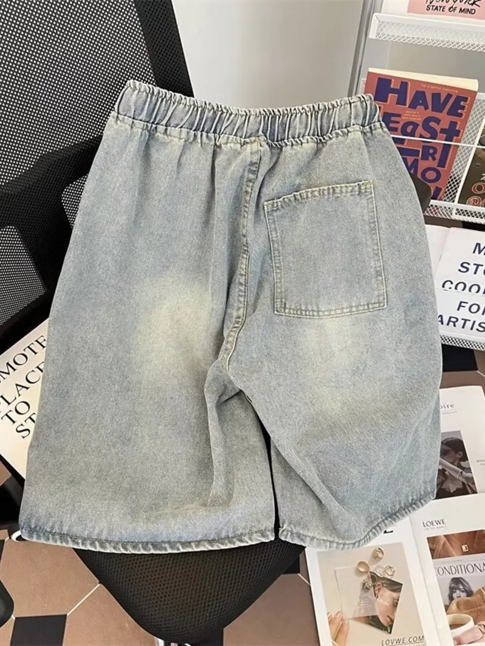 Men's Full Size Distressed Drawstring Denim Shorts Plus Size