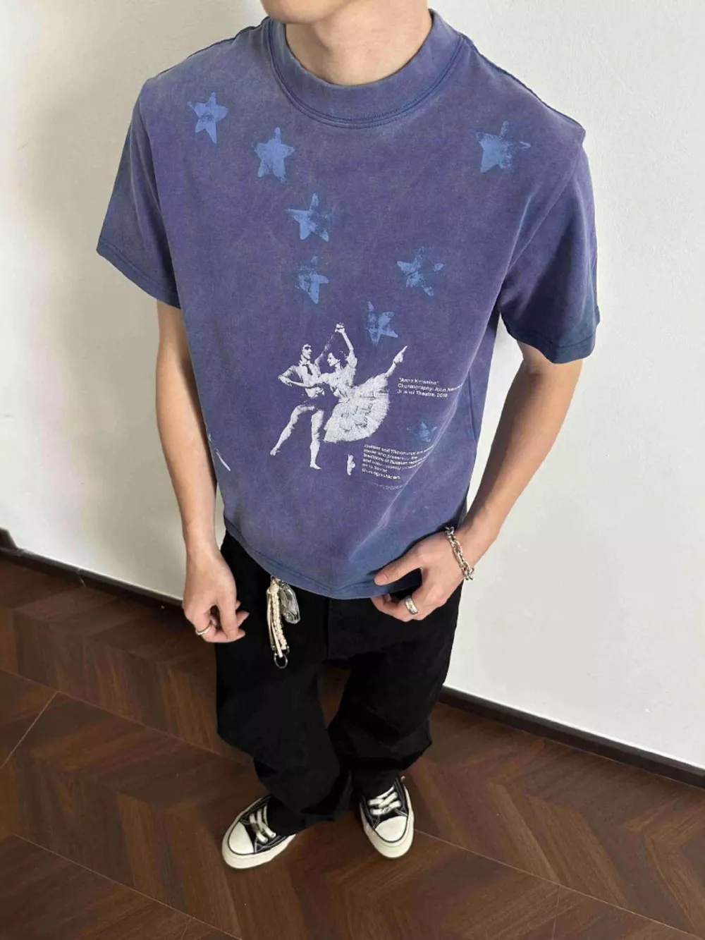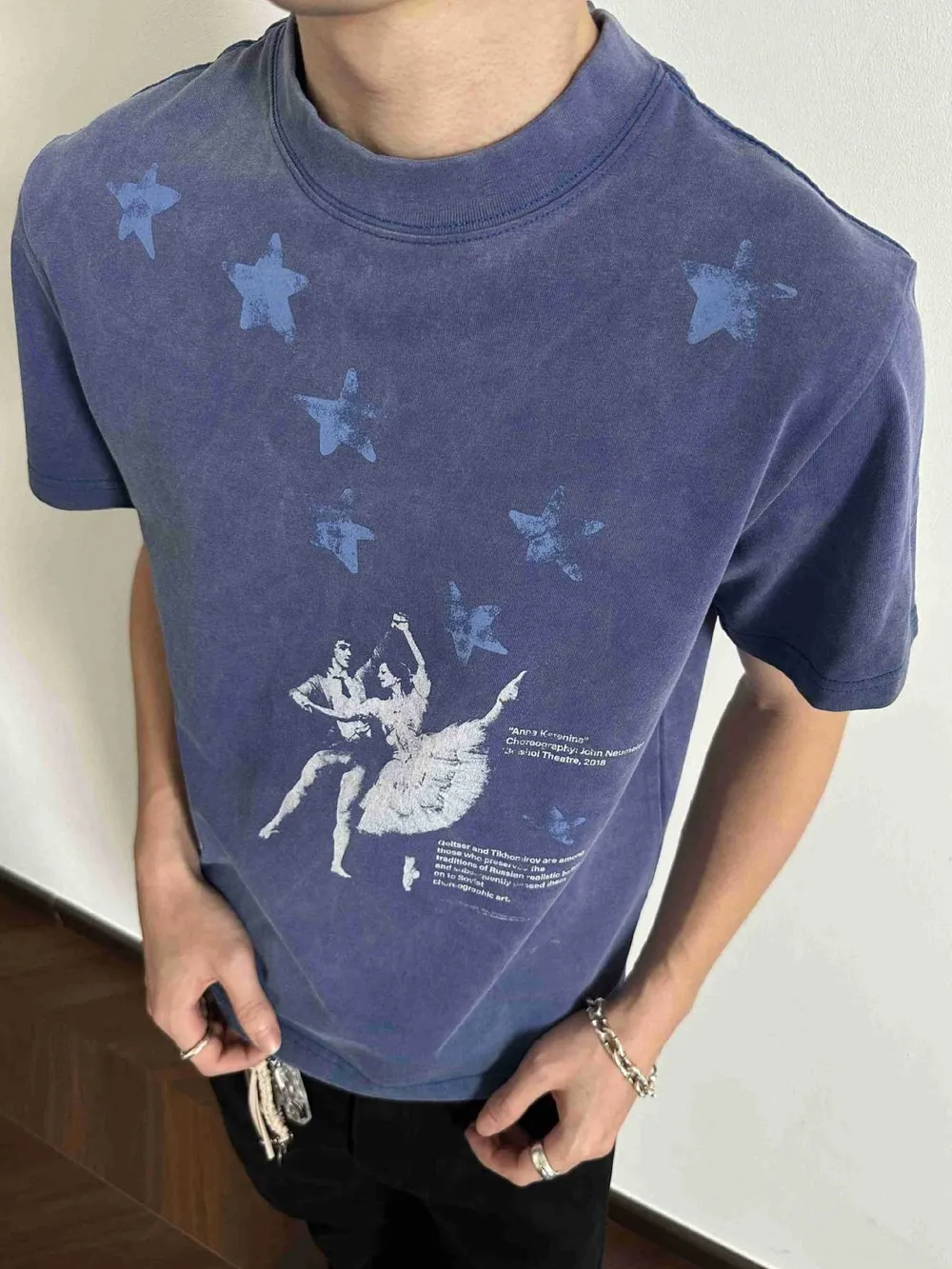 Men's Plus Size Vintage Washed Ballet Print T-Shirt