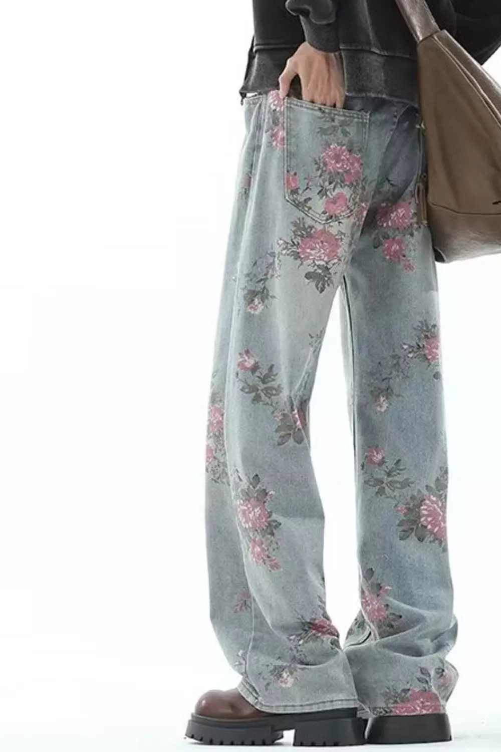 Men's Full Size Floral Print Wide Leg Jeans Plus Size