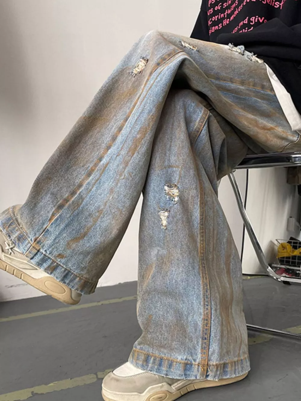 Men's Full Size Distressed Wide Leg Jeans Plus Size