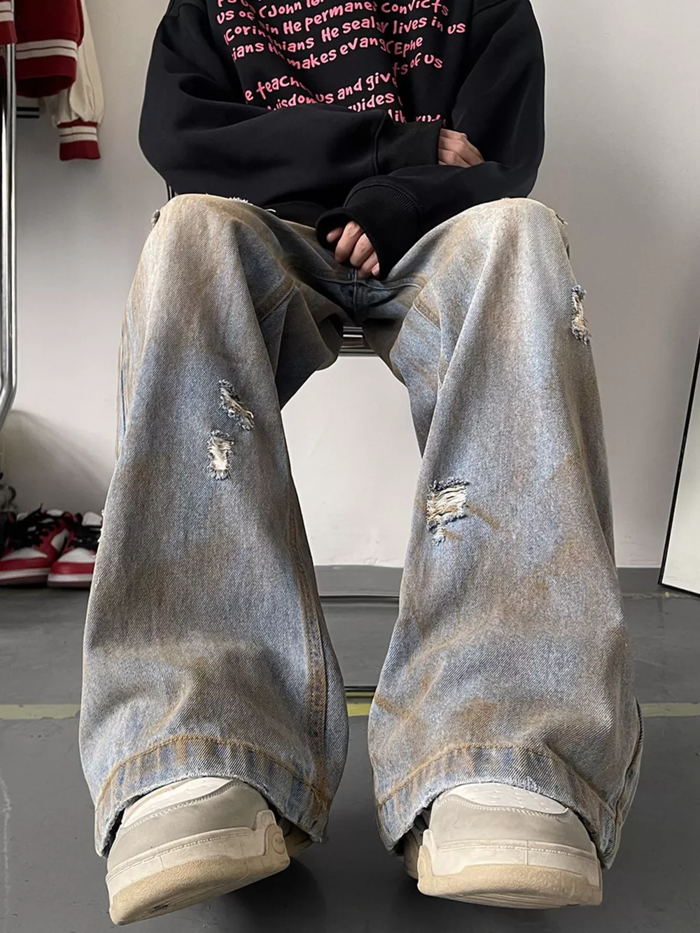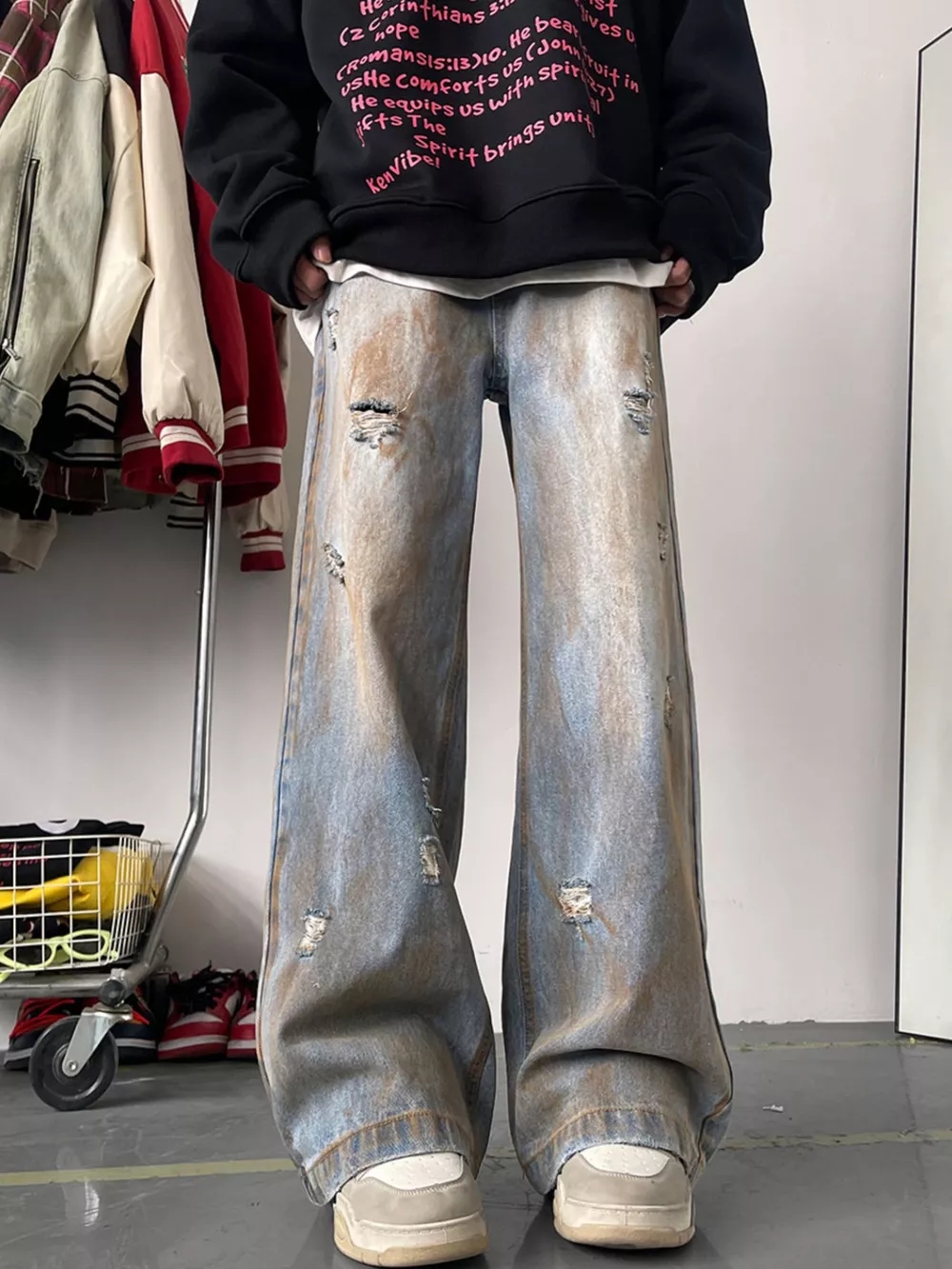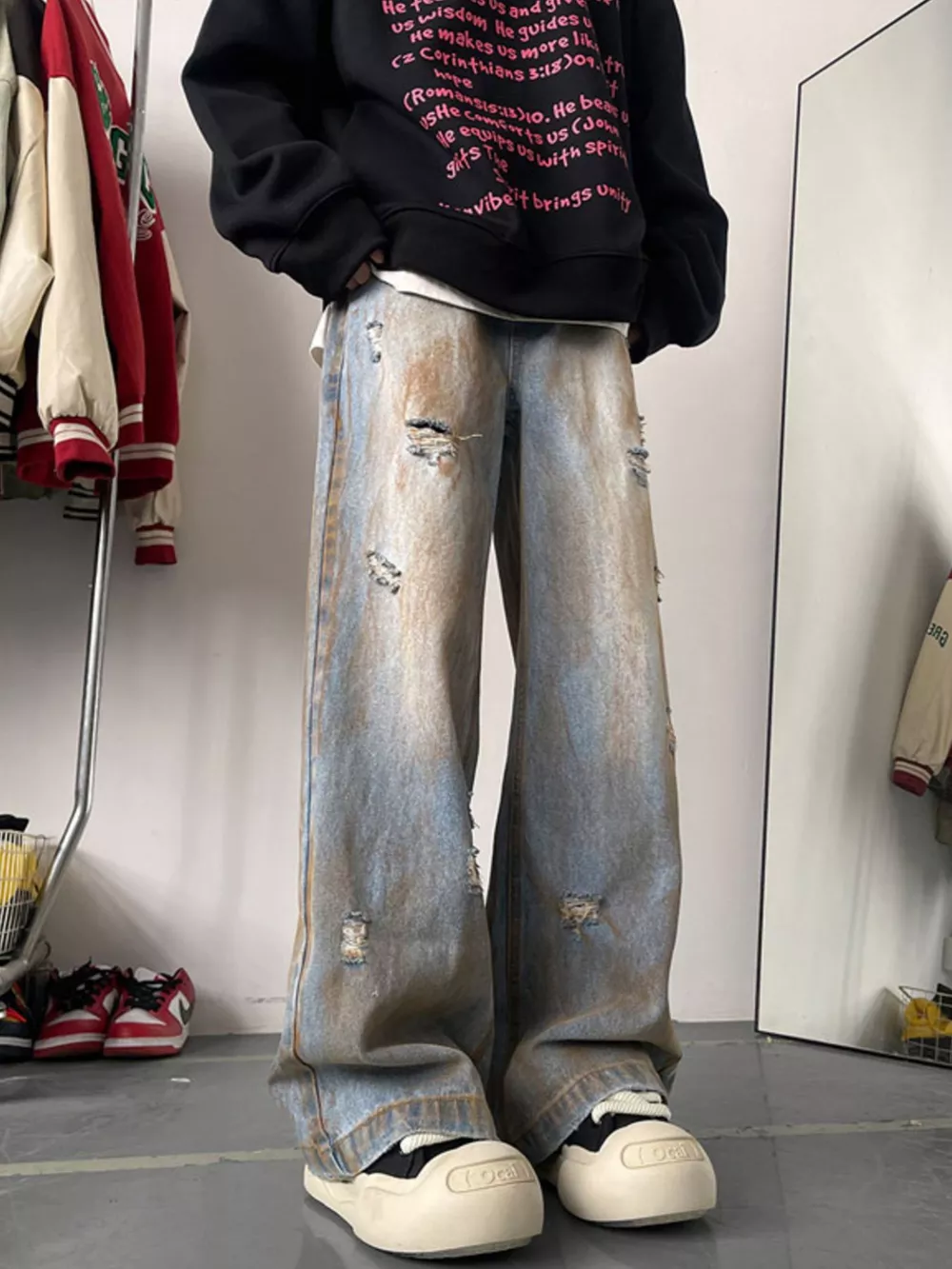 - Features:Oversized,Distressed,Washed